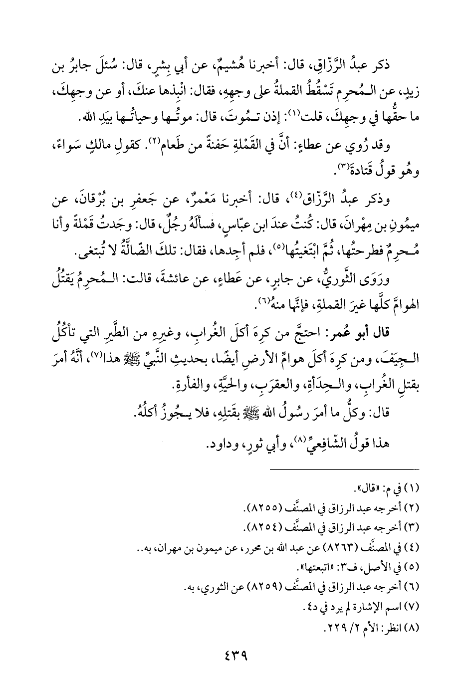 ذكر عبدُ الرَّزّاقِ، قال: أخبرنا هُشيمٌ، عن أبي بِشرٍ، قال: سُئلَ جابرُ بن زيدٍ، عن المُحرِم تَسْقُطُ القملةُ على وجهِهِ، فقال: انْبِذها عنكَ، أو عن وجهِكَ، ما حقُّها في وجهِكَ، قلت (¬١): إذن تمُوتَ، قال: موتُها وحياتُها بيَدِ الله.