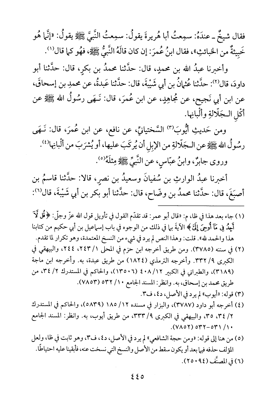 ومن حَديثِ أيُّوبَ (¬٣) السَّختيانيِّ، عن نافع، عن ابن عُمرَ، قال: نَهَى رسُولُ الله -صلى الله عليه وسلم- عن الجَلّالةِ من الإبِلِ أن يُركَبَ عليها، أو يُشرَبَ من ألْبانِها (¬٤).