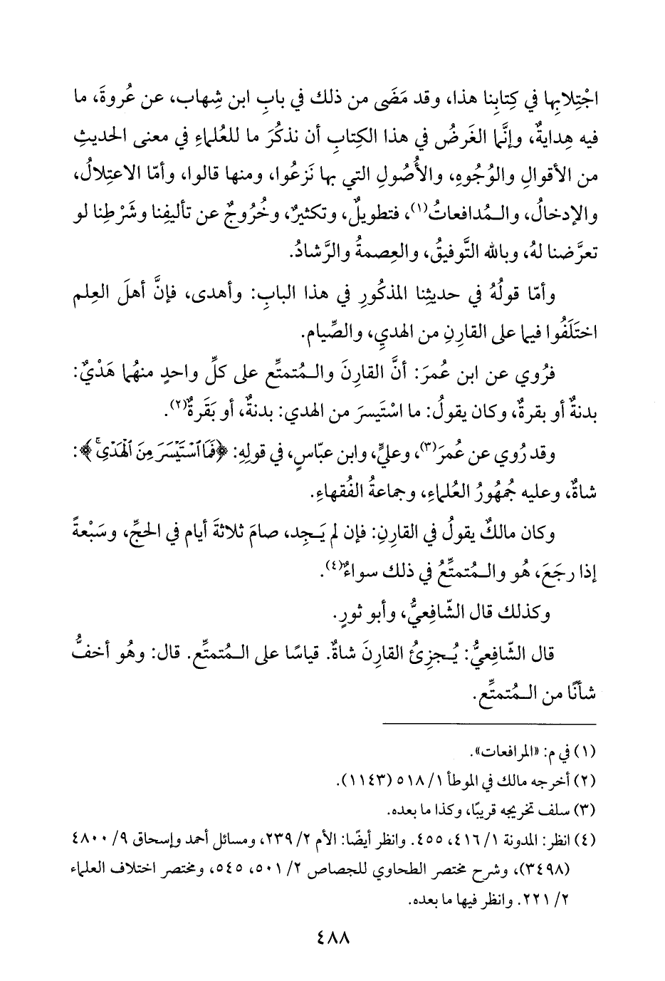 اجْتِلابِها في كِتابِنا هذا، وقد مَضَى من ذلك في بابِ ابن شِهاب، عن عُروةَ، ما فيه هِدايةٌ، وإنَّما الغَرضُ في هذا الكِتابِ أن نذكُرَ ما للعُلماءِ في معنى الحديثِ من الأقوالِ والوُجُوهِ، والأُصُولِ التي بها نَزعُوا، ومنها قالوا، وأمّا الاعتِلالُ، والإدخالُ، والمُدافعاتُ (¬١)، فتطويلٌ، وتكثيرٌ، وخُرُوجٌ عن تأليفِنا وشَرْطِنا لو تعرَّضنا لهُ، وبالله التَّوفيقُ، والعِصمةُ والرَّشادُ.