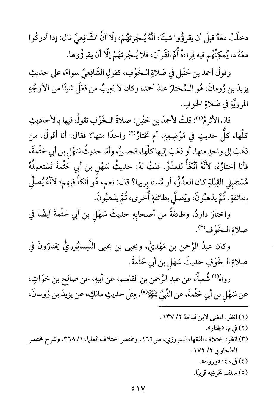 وكان عبدُ الرَّحمن بن مَهْديٍّ، ويحيى بن يحيى النَّيسابُوريُّ يختارُونَ في صلاةِ الخَوْفِ حديثَ سَهْلِ بن أبي حَثْمةَ.