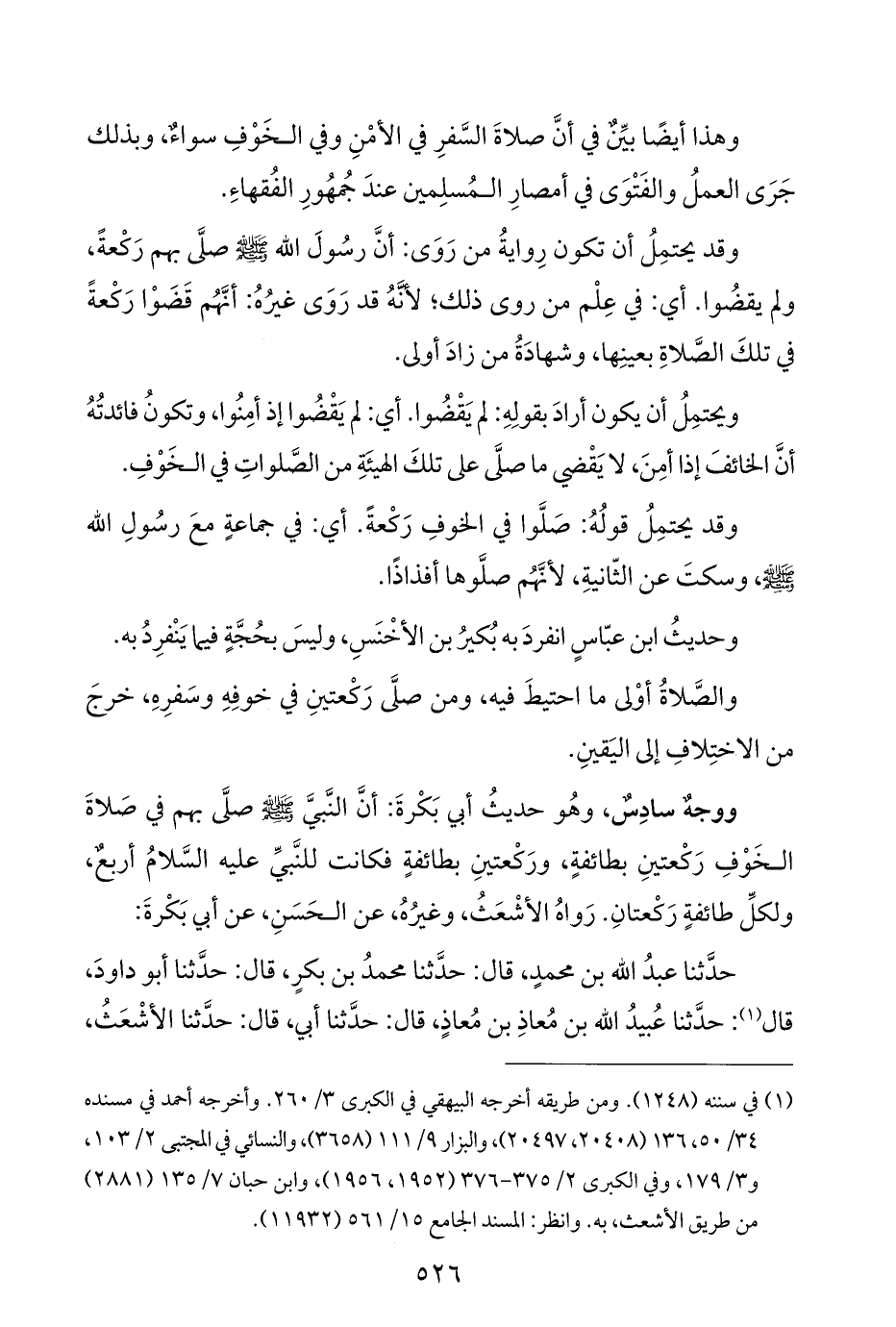 وهذا أيضًا بيِّنٌ في أنَّ صلاةَ السَّفرِ في الأمْنِ وفي الخَوْفِ سواءٌ، وبذلك جَرَى العملُ والفَتْوَى في أمصارِ المُسلِمين عندَ جُمهُورِ الفُقهاءِ.