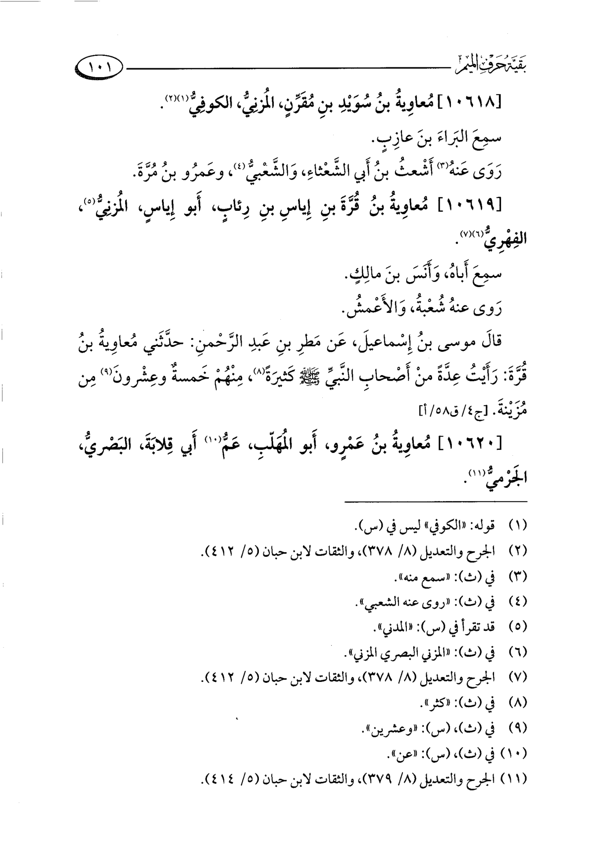 [١٠٦١٩] مُعاوِيةُ بنُ قُرَّةَ بنِ إِياسِ بنِ رِئابٍ، أَبو إِياسٍ، المُزنِيُّ (¬٥)، الفِهْرِيُّ (¬٦) (¬٧).