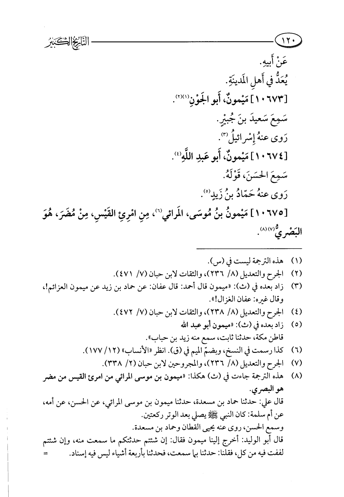 (¬٨) هذه الترجمة جاءت في (ث) هكذا: "ميمون بن موسى المرائي من امرئ القيس من مضر هو البصري.