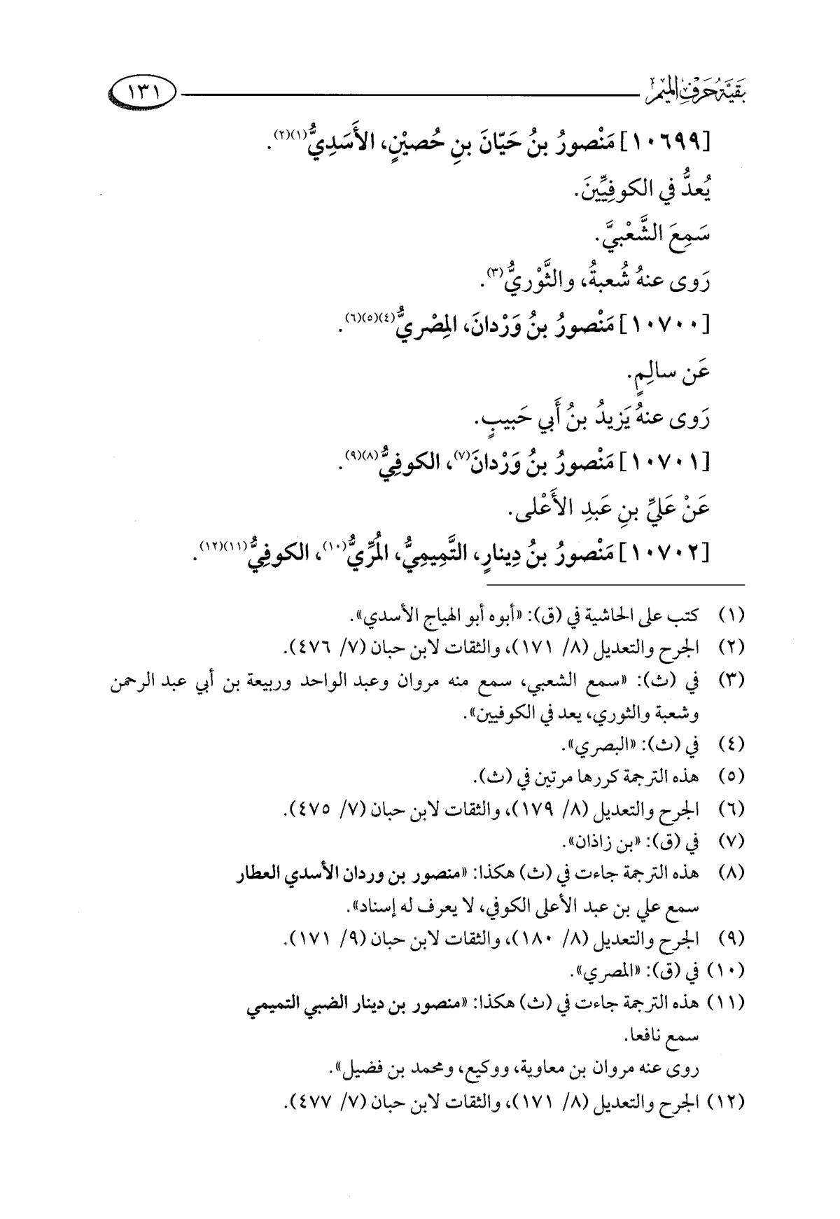 (¬٨) هذه الترجمة جاءت في (ث) هكذا: "منصور بن وردان الأسدي العطار