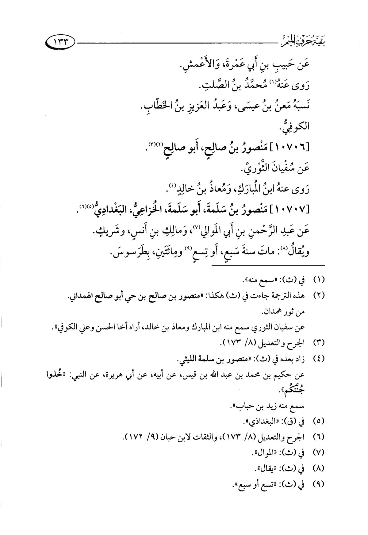 (¬٢) هذه الترجمة جاءت في (ث) هكذا: "منصور بن صالح بن حي أبو صالح الهمداني.