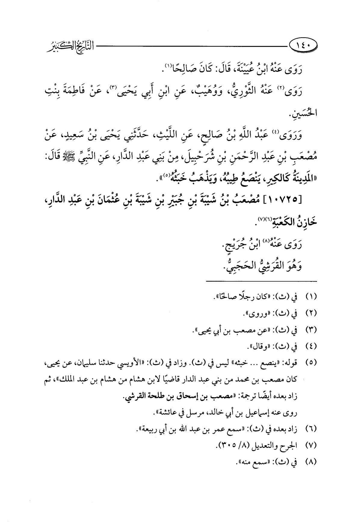 (¬٥) قوله: "ينصع. . . خبثه" ليس في (ث). وزاد في (ث): "الأويسي حدثنا سليمان، عن يحيى، كان مصعب بن محمد من بني عبد الدار قاضيًا لابن هشام من هشام بن عبد الملك"، ثم زاد بعده أيضًا ترجمة: "مصعب بن إسحاق بن طلحة القرشي.