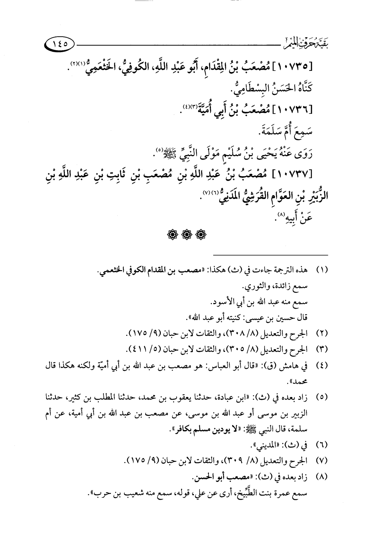 (¬١) هذه الترجمة جاءت في (ث) هكذا: "مصعب بن المقدام الكوفي الخثعمي.