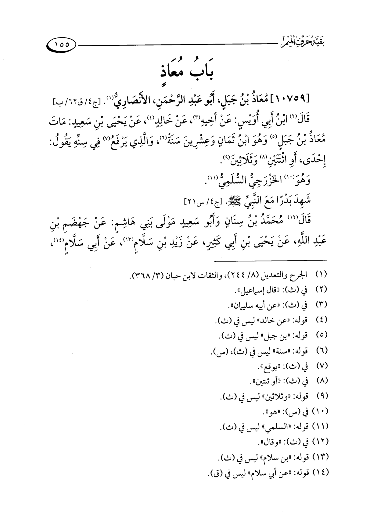 (¬٥) قوله: "بن جبل" ليس في (ث).