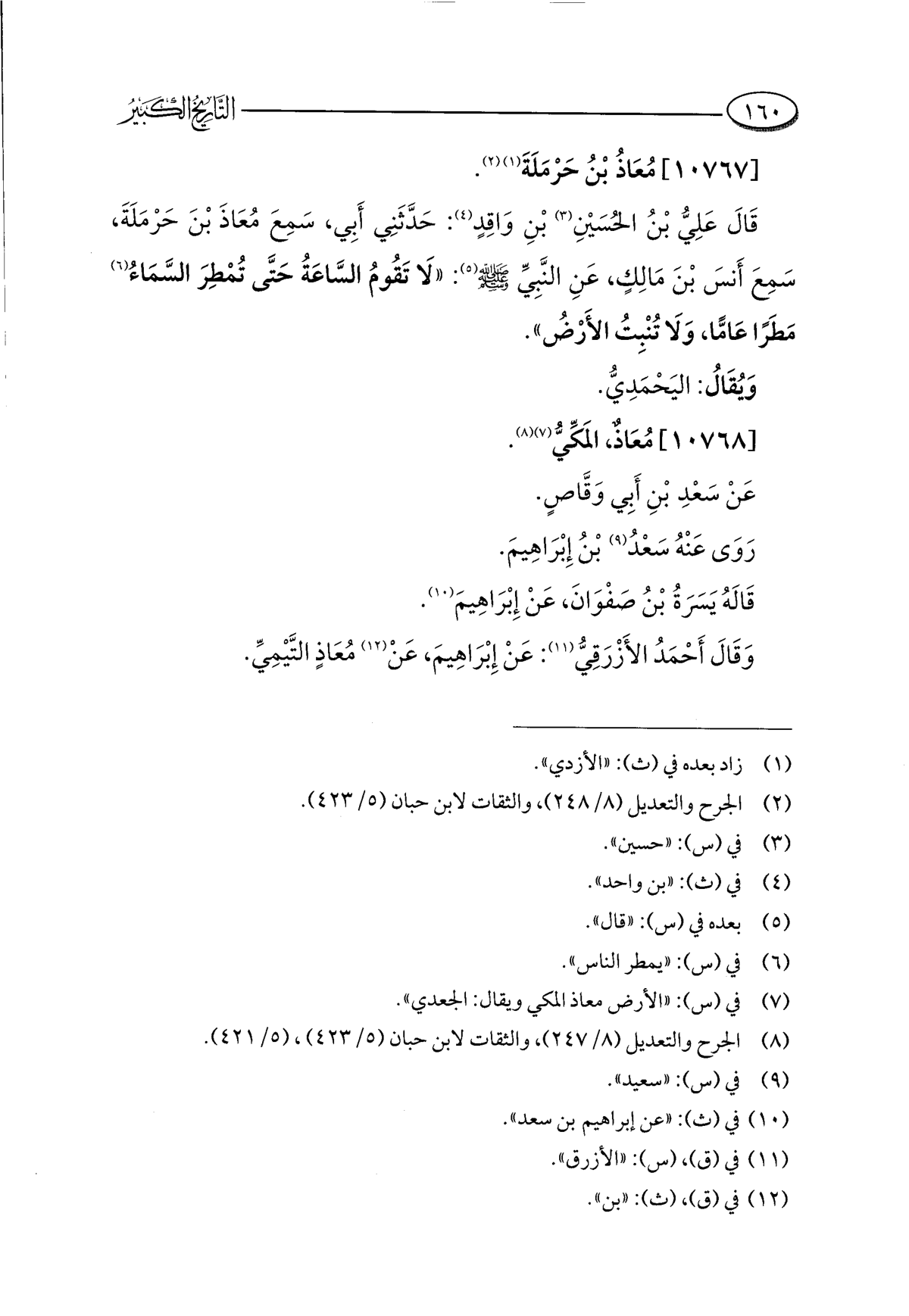 (¬٨) الجرح والتعديل (٨/ ٢٤٧)، والثقات لابن حبان (٥/ ٤٢٣)، (٥/ ٤٢١).