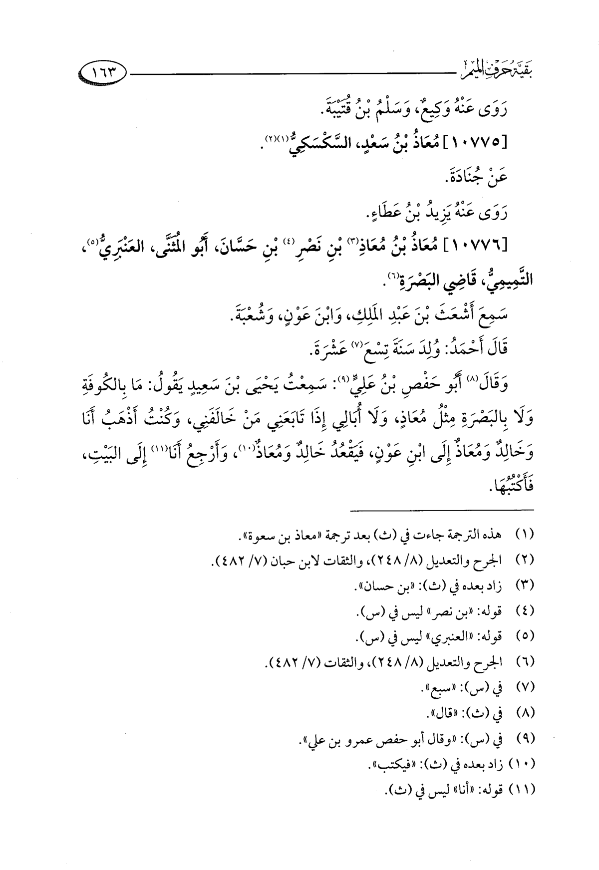 [١٠٧٧٦] مُعَاذُ بْنُ مُعَاذِ (¬٣) بْنِ نَصْرِ (¬٤) بْنِ حَسَّانَ، أَبُو المُثَنَّى، العَنْبَرِيُّ (¬٥)، التَّمِيمِيُّ، قَاضِي البَصْرَةِ (¬٦).