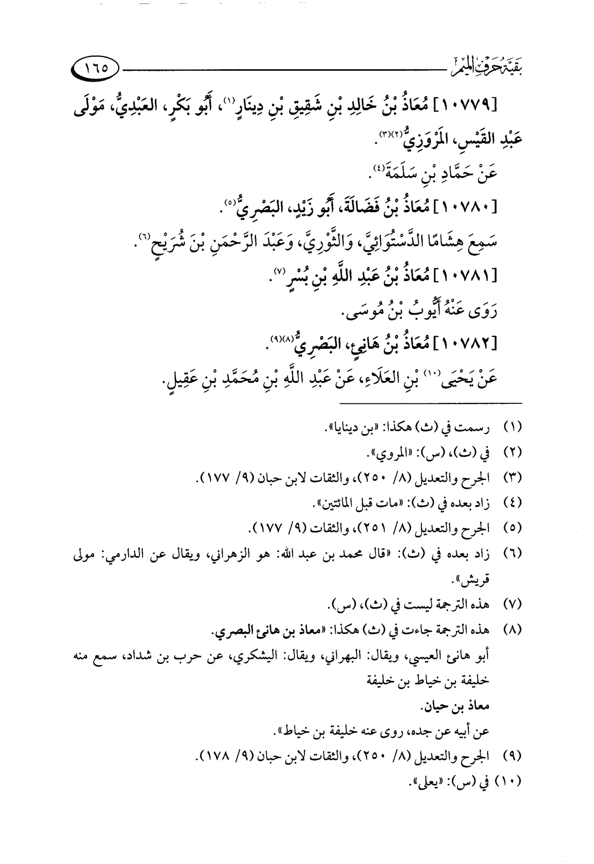 (¬٨) هذه الترجمة جاءت في (ث) هكذا: "معاذ بن هانئ البصري.