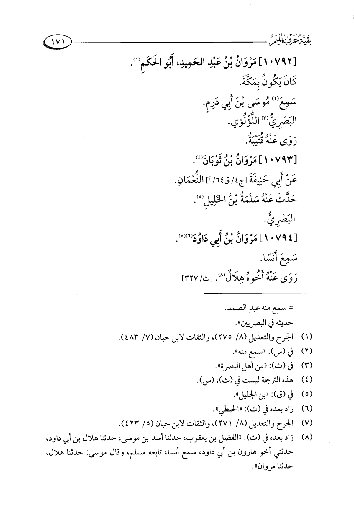 (¬٧) الجرح والتعديل (٨/ ٢٧١)، والثقات لابن حبان (٥/ ٤٢٣).