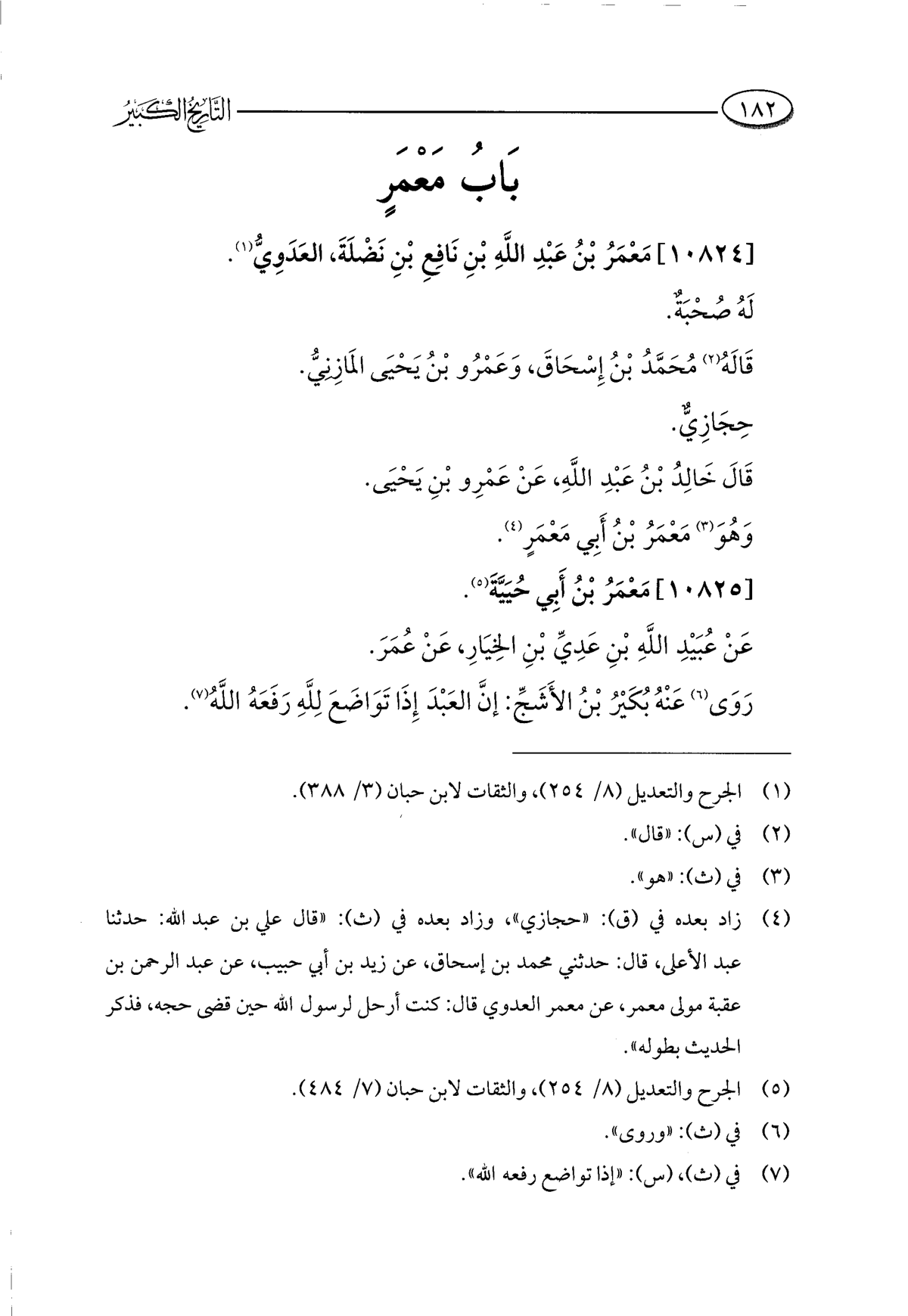 (¬٥) الجرح والتعديل (٨/ ٢٥٤)، والثقات لابن حبان (٧/ ٤٨٤).