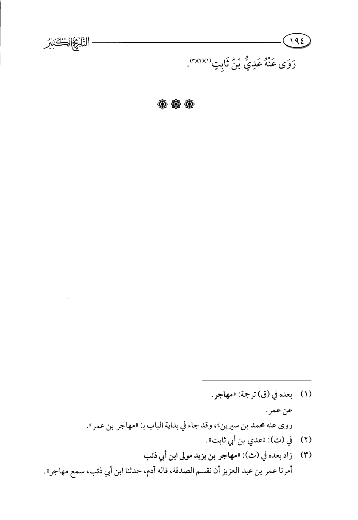 روى عنه محمد بن سيرين"، وقد جاء في بداية الباب بـ: "مهاجر بن عمر".