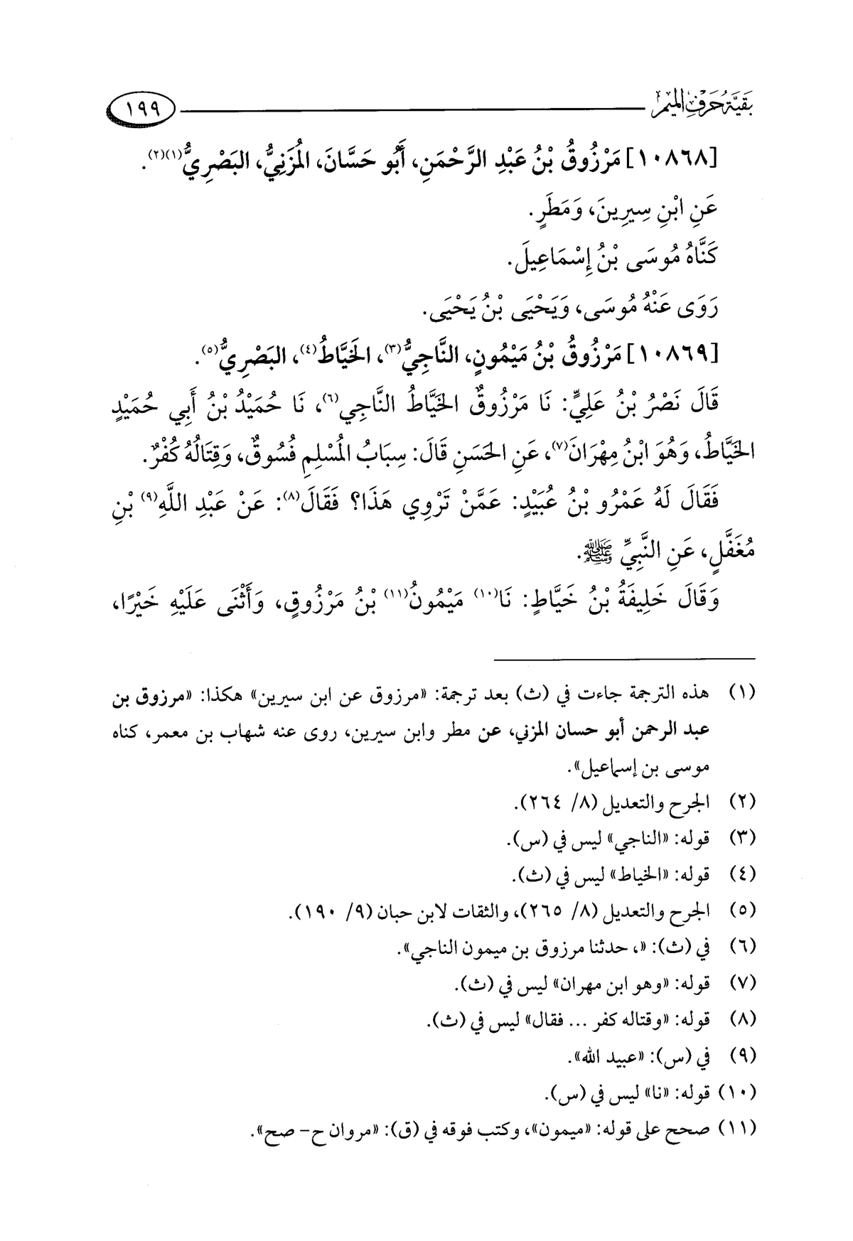 [١٠٨٦٩] مَرْزُوقُ بْنُ مَيْمُونٍ، النَّاجِيُّ (¬٣)، الخَيَّاطُ (¬٤)، البَصْرِيُّ (¬٥).