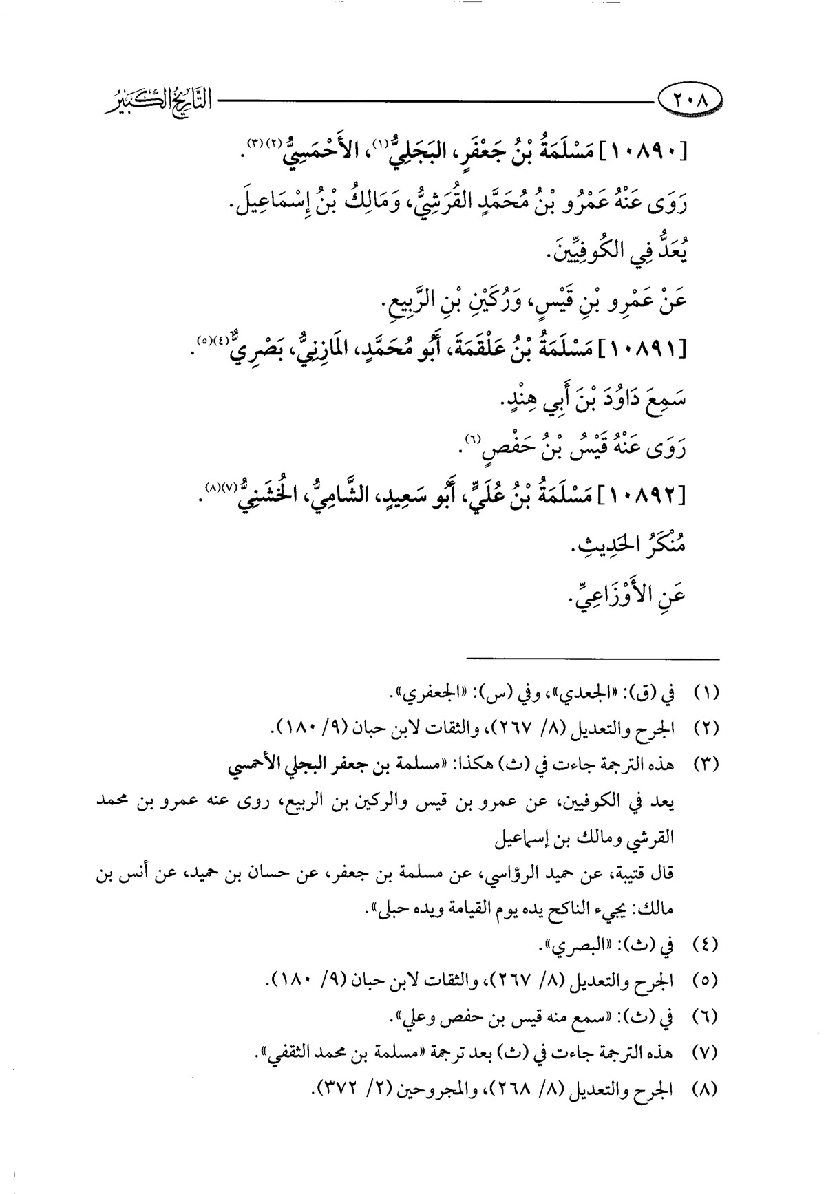 (¬٣) هذه الترجمة جاءت في (ث) هكذا: "مسلمة بن جعفر البجلي الأحمسي