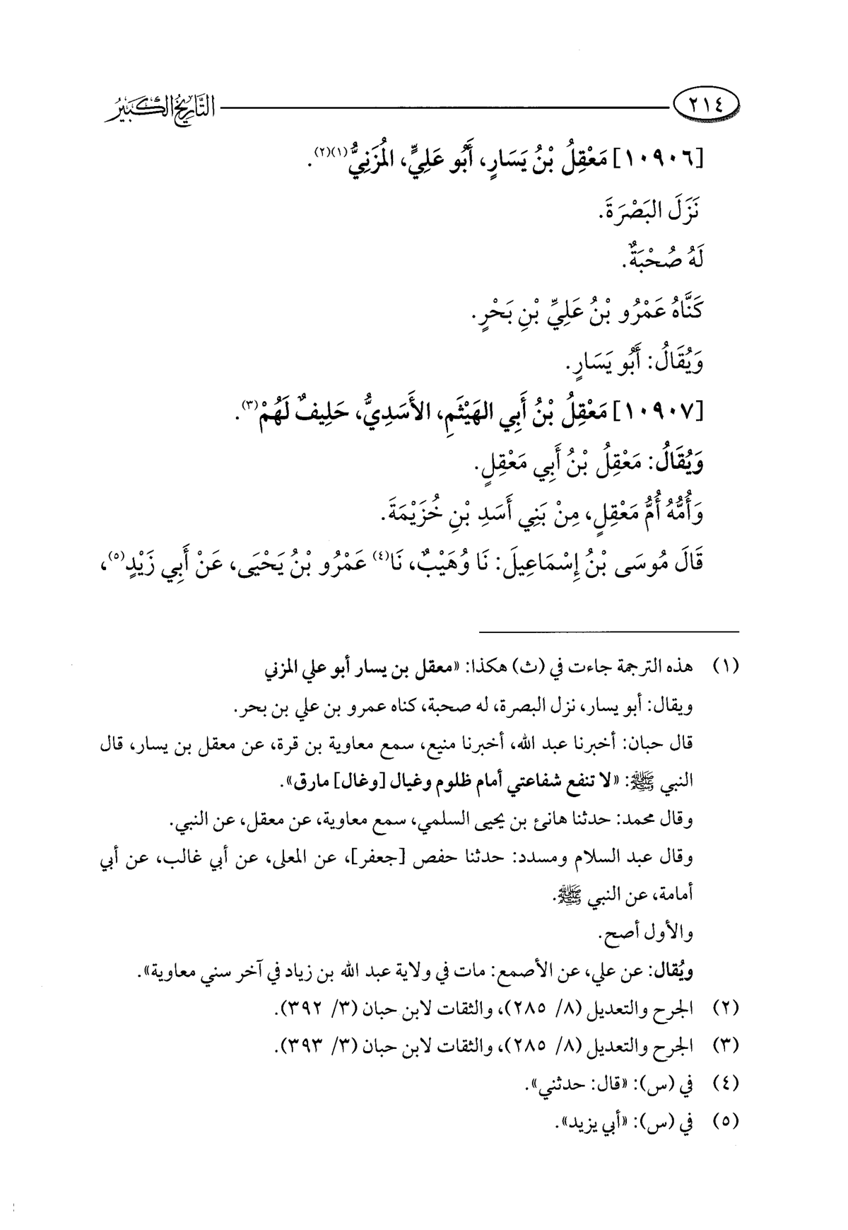 (¬١) هذه الترجمة جاءت في (ث) هكذا: "معقل بن يسار أبو علي المزني
