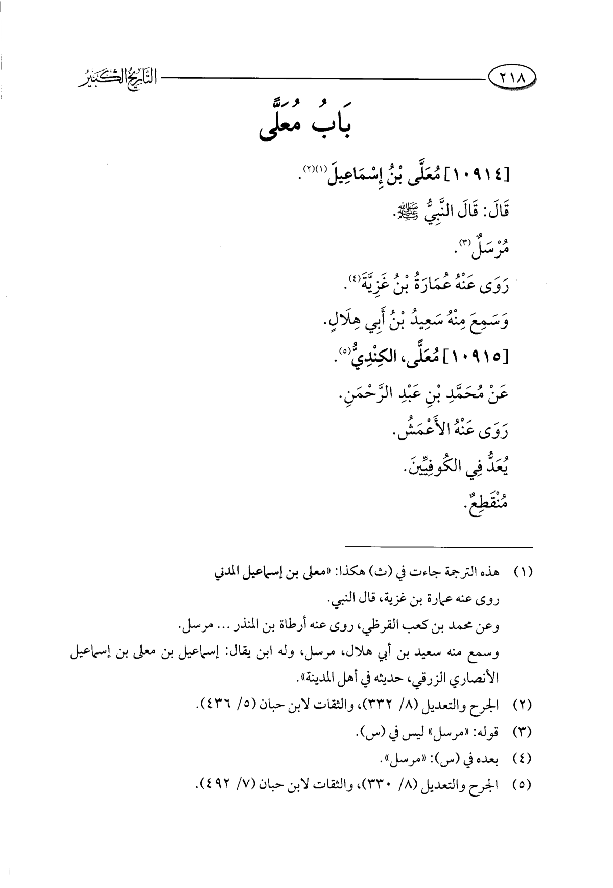 (¬١) هذه الترجمة جاءت في (ث) هكذا: "معلى بن إسماعيل المدني