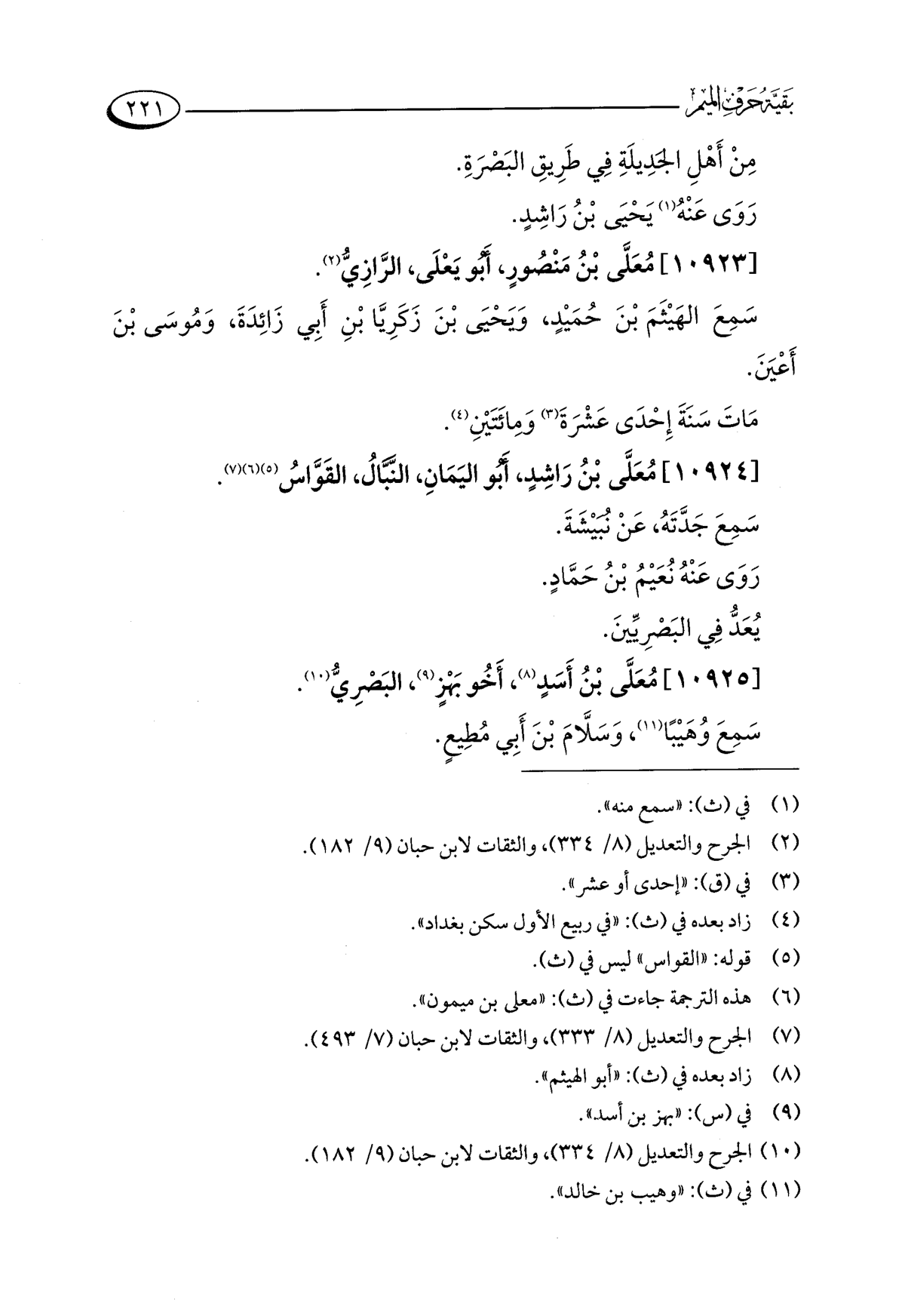 [١٠٩٢٥] مُعَلَّى بْنُ أَسَدٍ (¬٨)، أَخُو بَهْزٍ (¬٩)، البَصْرِيُّ (¬١٠).