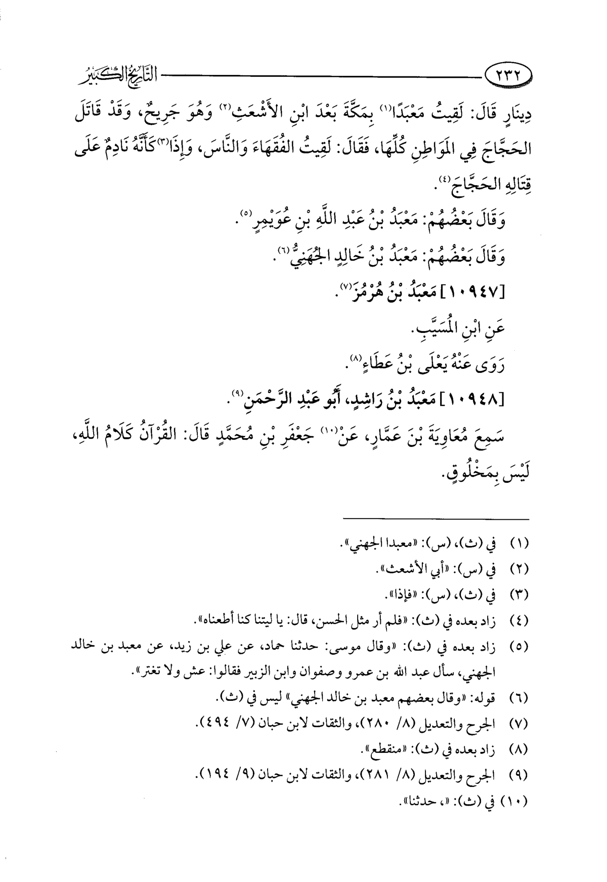 (¬٦) قوله: "وقال بعضهم معبد بن خالد الجهني" ليس في (ث).