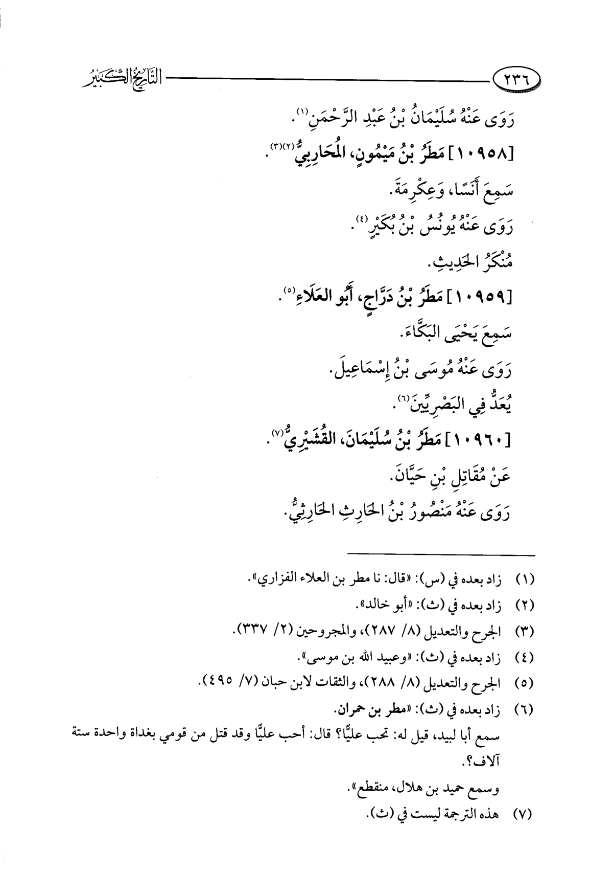 (¬٦) زاد بعده في (ث): "مطر بن حمران.