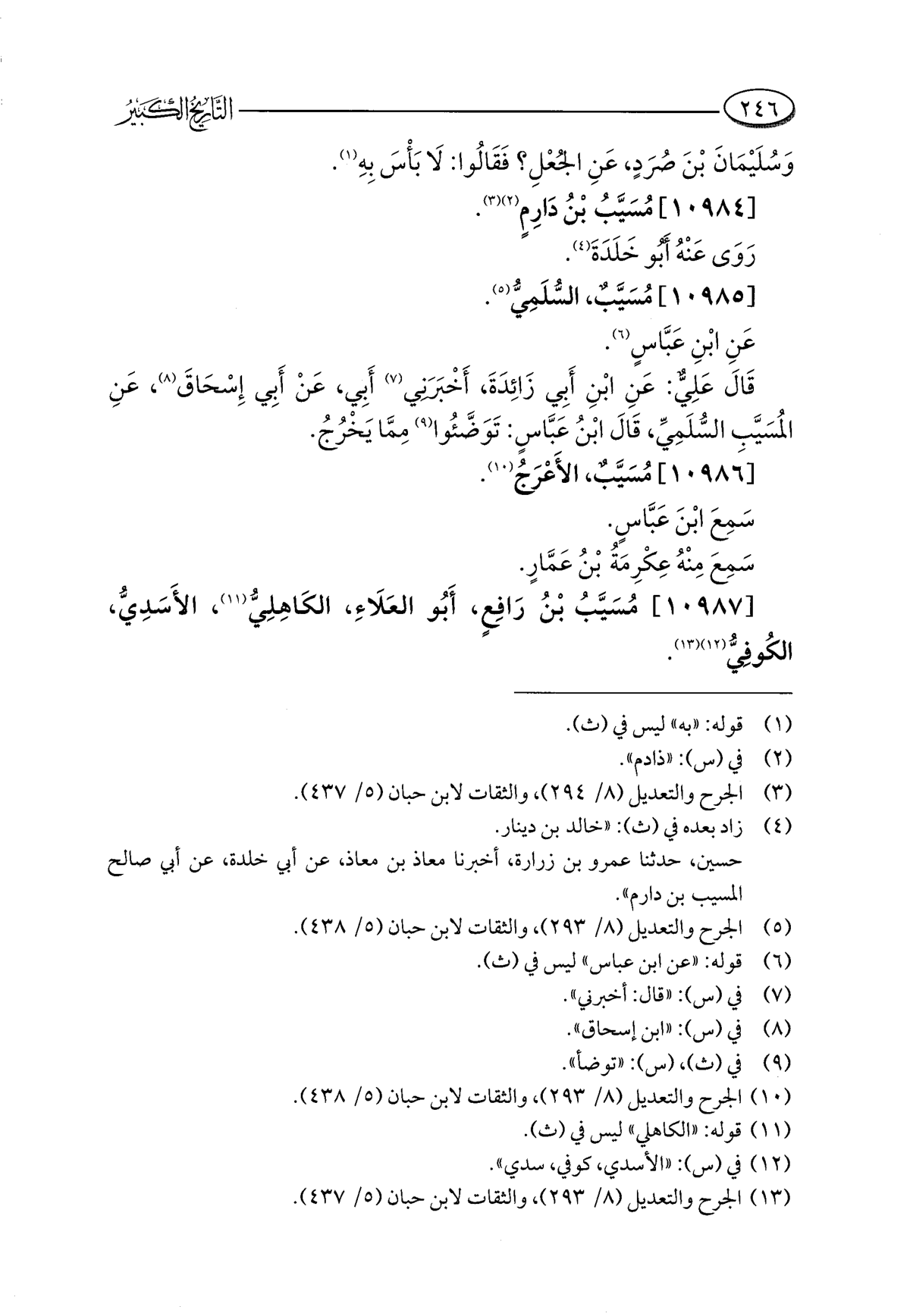 (¬٥) الجرح والتعديل (٨/ ٢٩٣)، والثقات لابن حبان (٥/ ٤٣٨).