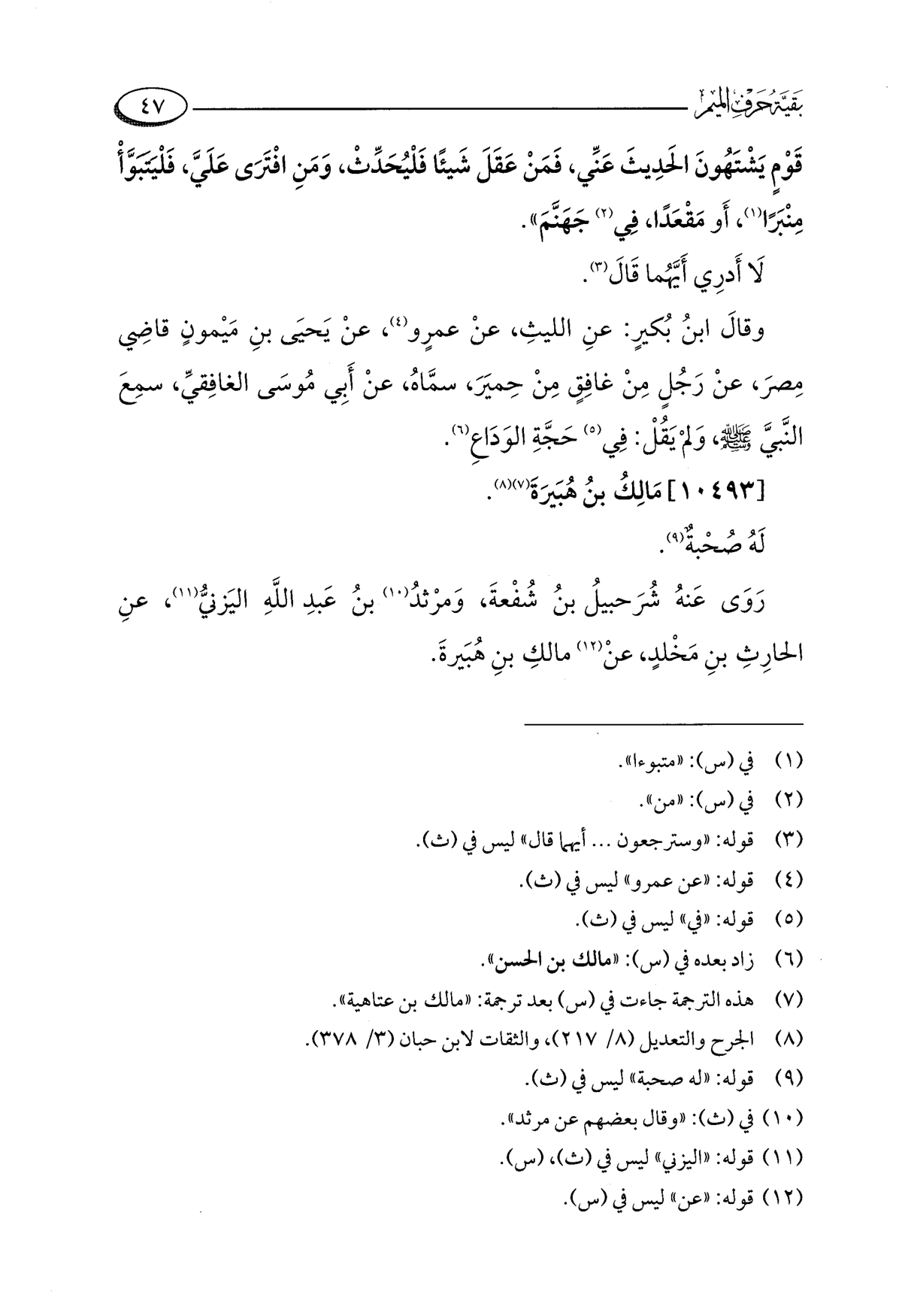 [١٠٤٩٣] مَالِكُ بنُ هُبَيرَةَ (¬٧) (¬٨).