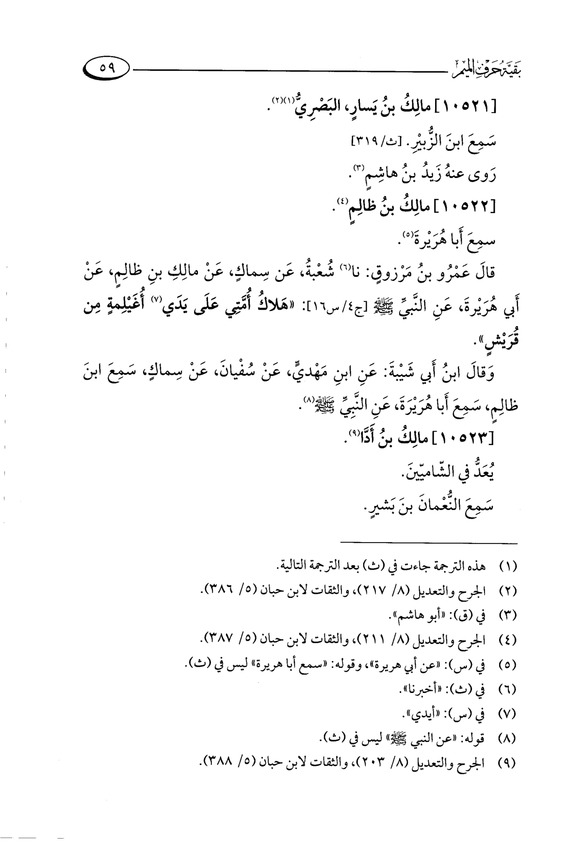 (¬٩) الجرح والتعديل (٨/ ٢٠٣)، والثقات لابن حبان (٥/ ٣٨٨).
