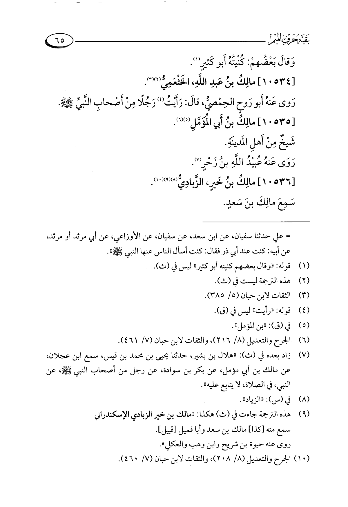[١٠٥٣٦] مالِكُ بنُ خَيرٍ، الزَّبادِيُّ (¬٨) (¬٩) (¬١٠).