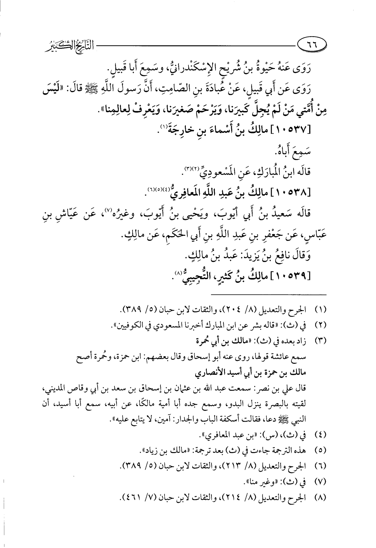 (¬٥) هذه الترجمة جاءت في (ث) بعد ترجمة: "مالك بن زياد".