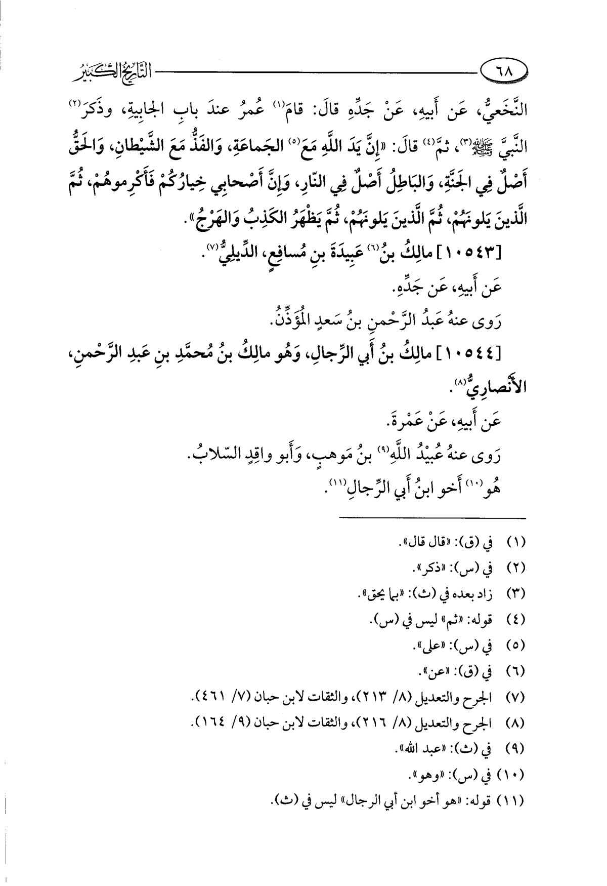 [١٠٥٤٤] مالِكُ بنُ أَبِي الرِّجالِ، وَهُو مالِكُ بنُ مُحمَّدِ بنِ عَبدِ الرَّحْمنِ، الأَنْصارِيُّ (¬٨).