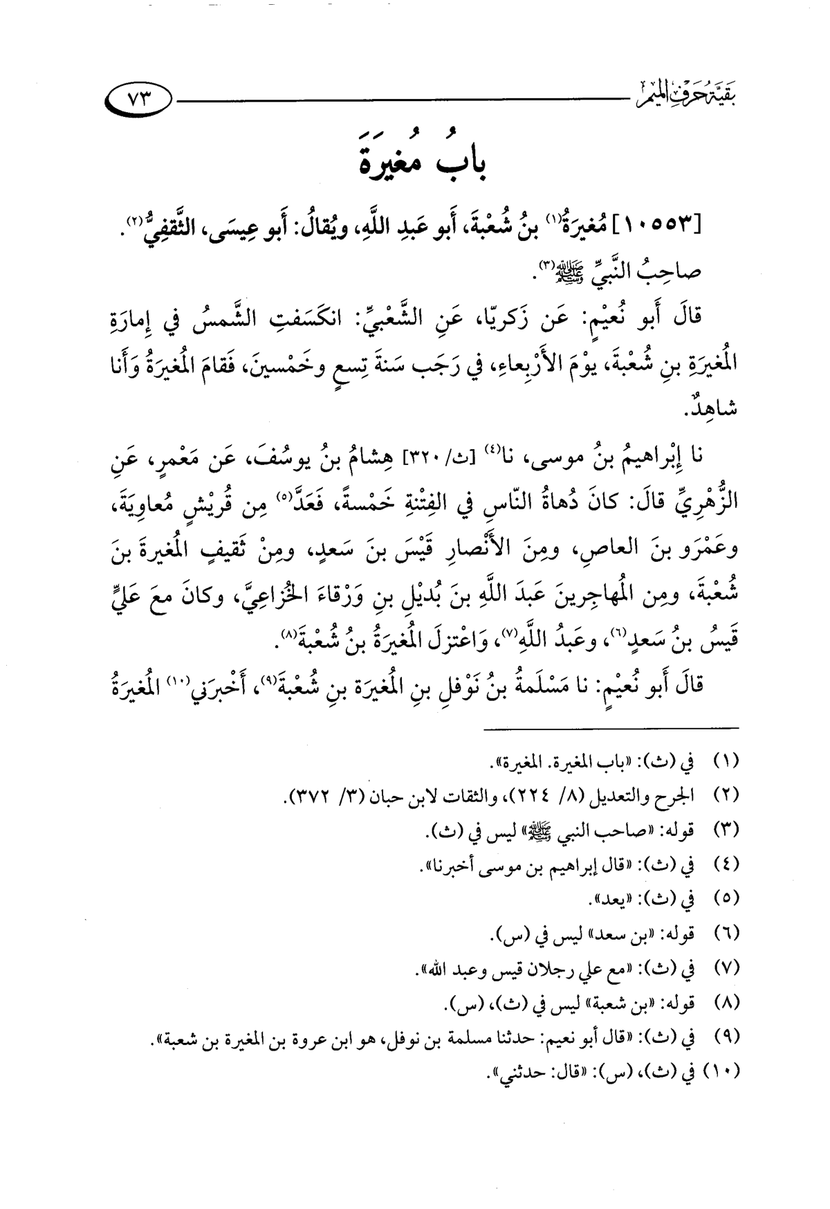 [١٠٥٥٣] مُغيرَةُ (¬١) بنُ شُعْبةَ، أَبو عَبدِ اللَّهِ، ويُقالُ: أَبو عِيسَى، الثَّقفِيُّ (¬٢).