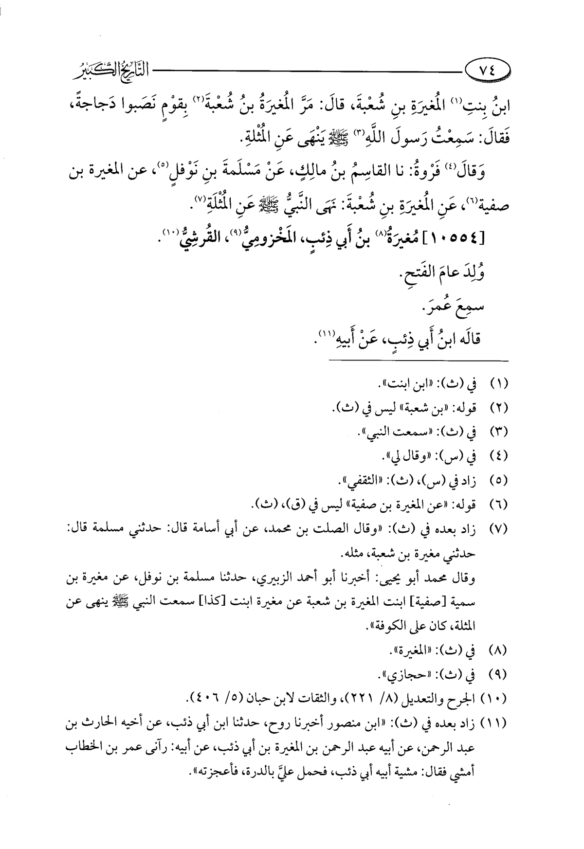 (¬٧) زاد بعده في (ث): "وقال الصلت بن محمد، عن أبي أسامة قال: حدثني مسلمة قال: حدثني مغيرة بن شعبة، مثله.