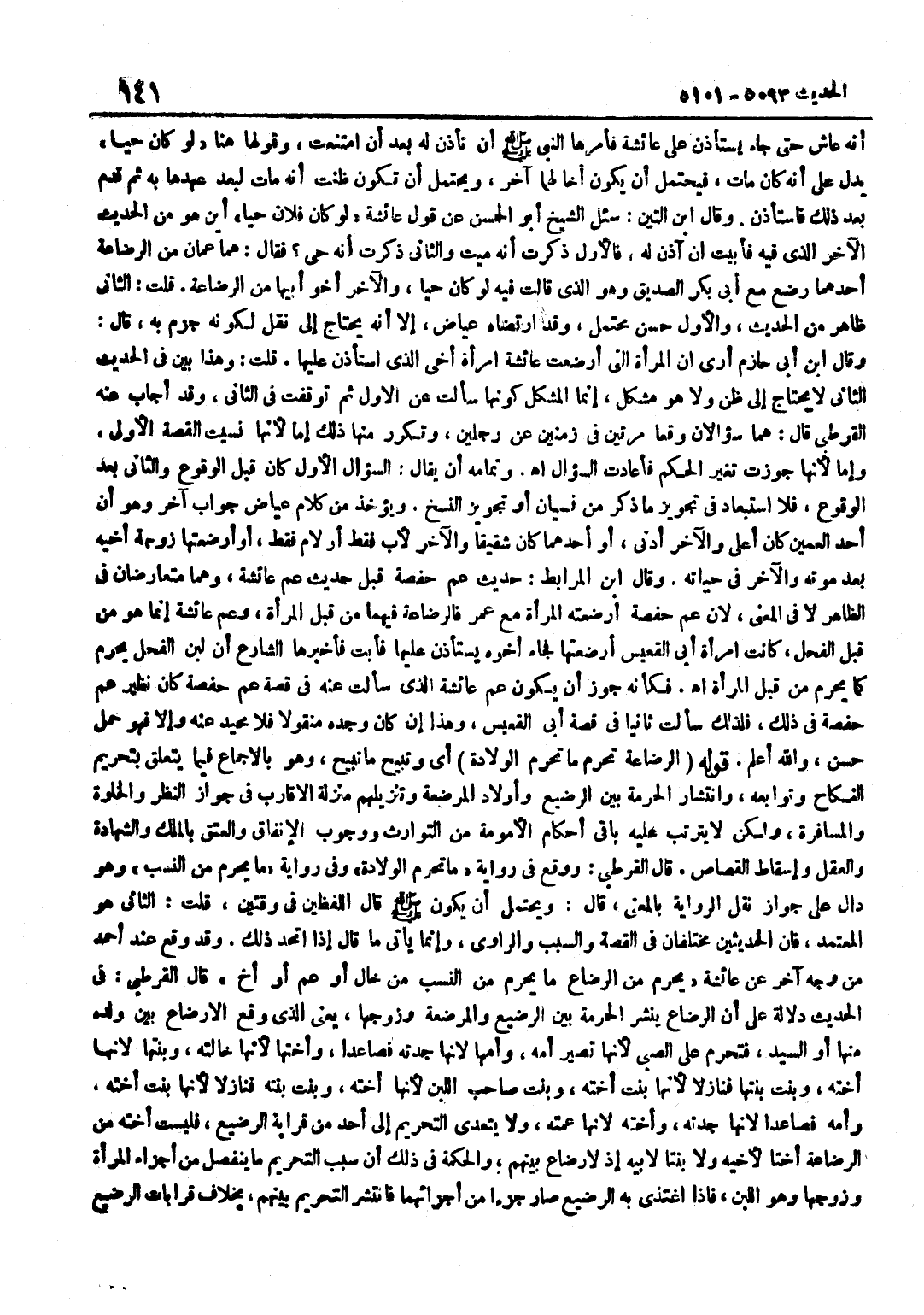 أَنَّهُ عَاشَ حَتَّى جَاءَ يَسْتَأْذِنُ عَلَى عَائِشَةَ فَأَمَرَهَا النَّبِيُّ صَلَّى اللَّهُ عَلَيْهِ وَسَلَّمَ أَنْ تَأْذَنَ لَهُ بَعْدَ أَنِ امْتَنَعَتْ وَقَوْلُهَا هُنَا لَوْ كَانَ حَيًّا يَدُلُّ عَلَى أَنَّهُ كَانَ مَاتَ فَيَحْتَمِلُ أَنْ يَكُونَ أَخًا لَهُمَا آخَرَ وَيَحْتَمِلُ أَنْ تَكُونَ ظَنَّتْ أَنَّهُ مَاتَ لِبُعْدِ عَهْدِهَا بِهِ ثُمَّ قَدِمَ بَعْدَ ذَلِكَ فَاسْتَأْذَنَ وَقَالَ بن التِّينِ سُئِلَ الشَّيْخُ أَبُو الْحَسَنِ عَنْ قَوْلِ عَائِشَةَ لَوْ كَانَ فُلَانٌ حَيًّا أَيْنَ هُوَ مِنَ الْحَدِيثِ الْآخَرِ الَّذِي فِيهِ فَأَبَيْتُ أَنْ آذَنَ لَهُ فَالْأَوَّلُ ذَكَرَتْ أَنَّهُ مَيِّتٌ وَالثَّانِي ذَكَرَتْ أَنَّهُ حَيٌّ فَقَالَ هُمَا عَمَّانِ مِنَ الرَّضَاعَةِ أَحَدُهُمَا وُضِعَ مَعَ أَبِي بَكْرٍ الصِّدِّيقِ وَهُوَ الَّذِي قَالَتْ فِيهِ لَوْ كَانَ حَيًّا وَالْآخَرُ أَخُو أَبِيهَا مِنَ الرَّضَاعَةِ قُلْتُ الثَّانِي ظَاهِرٌ مِنَ الْحَدِيثِ وَالْأَوَّلُ حَسَنٌ مُحْتَمِلٌ وَقَدِ ارْتَضَاهُ عِيَاضٌ إِلَّا أَنَّهُ يَحْتَاجُ إِلَى نَقْلٍ لكَونه جزم بِهِ قَالَ وَقَالَ بن أَبِي حَازِمٍ أَرَى أَنَّ الْمَرْأَةَ الَّتِي أَرْضَعَتْ عَائِشَةَ امْرَأَةُ أَخِي الَّذِي اسْتَأْذَنَ عَلَيْهَا قُلْتُ وَهَذَا بَيِّنٌ فِي الْحَدِيثِ الثَّانِي لَا يَحْتَاجُ إِلَى ظَنٍّ وَلَا هُوَ مُشْكِلٌ إِنَّمَا الْمُشْكِلُ كَوْنُهَا سَأَلَتْ عَنِ الْأَوَّلِ ثُمَّ تَوَقَّفَتْ فِي الثَّانِي وَقَدْ أَجَابَ عَنْهُ الْقُرْطُبِيُّ قَالَ هُمَا سُؤَالَانِ وَقَعَا مَرَّتَيْنِ فِي زَمَنَيْنِ عَنْ رَجُلَيْنِ وَتَكَرَّرَ مِنْهَا ذَلِكَ إِمَّا لِأَنَّهَا نَسِيَتِ الْقِصَّةَ الْأُولَى وَإِمَّا لِأَنَّهَا جَوَّزَتْ تَغَيُّرَ الْحُكْمِ فَأَعَادَتِ السُّؤَالَ اه وَتَمَامُهُ أَنْ يُقَالَ السُّؤَالُ الْأَوَّلُ كَانَ قَبْلَ الْوُقُوعِ وَالثَّانِي بَعْدَ الْوُقُوعِ فَلَا اسْتِبْعَادَ فِي تَجْوِيزِ مَا ذُكِرَ مِنْ نِسْيَانٍ أَوْ تَجْوِيزِ النَّسْخِ وَيُؤْخَذُ مِنْ كَلَامِ عِيَاضٍ جَوَابٌ آخَرُ وَهُوَ أَنَّ أَحَدَ الْعَمَّيْنِ كَانَ أَعْلَى وَالْآخَرُ أَدْنَى أَوْ أَحَدُهُمَا كَانَ شَقِيقًا وَالْآخَرُ لِأَبٍ فَقَطْ أَوْ لِأُمٍّ فَقَطْ أَوْ أَرْضَعَتْهَا زَوْجَةُ أَخِيهِ بَعْدَ مَوْتِهِ وَالْآخَرُ فِي حَيَاته وَقَالَ بن الْمُرَابِطِ حَدِيثُ عَمِّ حَفْصَةَ قَبْلَ حَدِيثِ عَمِّ عَائِشَةَ وَهُمَا مُتَعَارِضَانِ فِي الظَّاهِرِ لَا فِي الْمَعْنَى لِأَنَّ عَمَّ حَفْصَةَ أَرْضَعَتْهُ الْمَرْأَةُ مَعَ عُمَرَ فَالرَّضَاعَةُ فِيهِمَا مِنْ قِبَلِ الْمَرْأَةِ وَعَمَّ عَائِشَةَ إِنَّمَا هُوَ مِنْ قِبَلِ الْفَحْلِ كَانَتِ امْرَأَةُ أَبِي الْقُعَيْسِ أَرْضَعَتْهَا فَجَاءَ أَخُوهُ يَسْتَأْذِنُ عَلَيْهَا فَأَبَتْ فَأَخْبَرَهَا الشَّارِعُ أَنَّ لَبَنَ الْفَحْلِ يُحَرِّمُ كَمَا يُحَرِّمُ مِنْ قِبَلِ الْمَرْأَةِ اه فَكَأَنَّهُ جَوَّزَ أَنْ يَكُونَ عَمُّ عَائِشَةَ الَّذِي سَأَلَتْ عَنْهُ فِي قِصَّةِ عَمِّ حَفْصَةَ كَانَ نَظِيرَ عَمِّ حَفْصَةَ فِي ذَلِكَ فَلِذَلِكَ سَأَلْتُ ثَانِيًا فِي قِصَّةِ أَبِي الْقُعَيْسِ وَهَذَا إِنْ كَانَ وَجَدَهُ مَنْقُولًا فَلَا مَحِيدَ عَنْهُ وَإِلَّا فَهُوَ حَمْلٌ حَسَنٌ وَاللَّهُ أَعْلَمُ قَوْلُهُ الرَّضَاعَةُ تُحَرِّمُ مَا تُحَرِّمُ الْوِلَادَةُ أَيْ وَتُبِيحُ مَا تُبِيحُ وَهُوَ بِالْإِجْمَاعِ فِيمَا يَتَعَلَّقُ بِتَحْرِيمِ النِّكَاحِ وَتَوَابِعِهِ وَانْتِشَارِ الْحُرْمَةِ بَيْنَ الرَّضِيعِ وَأَوْلَادِ الْمُرْضِعَةِ وَتَنْزِيلِهِمْ مَنْزِلَةَ الْأَقَارِبِ فِي جَوَازِ النَّظَرِ وَالْخَلْوَةِ وَالْمُسَافَرَةِ وَلَكِنْ لَا يَتَرَتَّبُ عَلَيْهِ بَاقِي أَحْكَامُ الْأُمُومَةِ مِنَ 