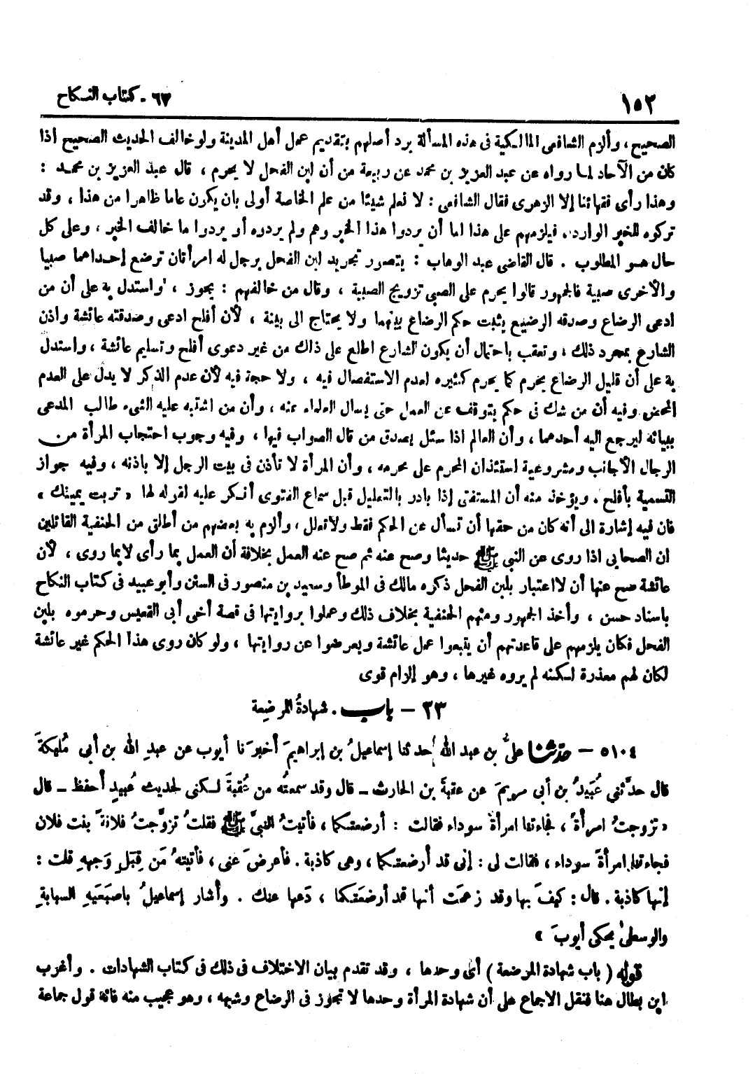 الصَّحِيحُ وَأَلْزَمَ الشَّافِعِيُّ الْمَالِكِيَّةَ فِي هَذِهِ الْمَسْأَلَةِ بِرَدِّ أَصْلِهِمْ بِتَقْدِيمِ عَمَلِ أَهْلِ الْمَدِينَةِ وَلَوْ خَالَفَ الْحَدِيثَ الصَّحِيحَ إِذَا كَانَ مِنَ الْآحَادِ لِمَا رَوَاهُ عَنْ عَبْدِ الْعَزِيزِ بْنِ مُحَمَّدٍ عَنْ رَبِيعَةَ مِنْ أَنَّ لَبَنَ الْفَحْلِ لَا يُحَرِّمُ قَالَ عَبْدُ الْعَزِيزِ بْنُ مُحَمَّدٍ وَهَذَا رَأْيُ فُقَهَائِنَا إِلَّا الزُّهْرِيِّ فَقَالَ الشَّافِعِيُّ لَا نَعْلَمُ شَيْئًا مِنْ عِلْمِ الْخَاصَّةِ أَوْلَى بِأَنْ يَكُونَ عَامًّا ظَاهِرًا مِنْ هَذَا وَقَدْ تَرَكُوهُ لِلْخَبَرِ الْوَارِدِ فَيَلْزَمُهُمْ عَلَى هَذَا إِمَّا أَنْ يردوا هَذَا الْخَبَر وهم وَلم يَرُدُّوهُ أَوْ يَرُدُّوا مَا خَالَفَ الْخَبَرَ وَعَلَى كُلِّ حَالٍ هُوَ الْمَطْلُوبُ قَالَ الْقَاضِي عَبْدُ الْوَهَّابِ يُتَصَوَّرُ تَجْرِيدُ لَبَنِ الْفَحْلِ بِرَجُلٍ لَهُ امْرَأَتَانِ تُرْضِعُ إِحْدَاهُمَا صَبِيًّا وَالْأُخْرَى صَبِيَّةً فَالْجُمْهُورُ قَالُوا يَحْرُمُ عَلَى الصَّبِيِّ تَزْوِيجُ الصَّبِيَّةِ وَقَالَ مَنْ خَالَفَهُمْ يَجُوزُ وَاسْتُدِلَّ بِهِ عَلَى أَنَّ مَنِ ادَّعَى الرَّضَاعَ وَصَدَّقَهُ الرَّضِيعُ يَثْبُتُ حُكْمُ الرَّضَاعِ بَيْنَهُمَا وَلَا يَحْتَاجُ إِلَى بَيِّنَةٍ لِأَنَّ أَفْلَحَ ادَّعَى وَصَدَّقَتْهُ عَائِشَةُ وَأَذِنَ الشَّارِعُ بِمُجَرَّدِ ذَلِكَ وَتُعُقِّبَ بِاحْتِمَالِ أَنْ يَكُونَ الشَّارِعُ اطَّلَعَ عَلَى ذَلِكَ مِنْ غَيْرِ دَعْوَى أَفْلَحَ وَتَسْلِيمِ عَائِشَةَ وَاسْتُدِلَّ بِهِ عَلَى أَنَّ قَلِيلَ الرَّضَاعِ يُحَرِّمُ كَمَا يُحَرِّمُ كَثِيرُهُ لِعَدَمِ الِاسْتِفْصَالِ فِيهِ وَلَا حُجَّةَ فِيهِ لِأَنَّ عَدَمَ الذِّكْرِ لَا يَدُلُّ عَلَى الْعَدَمِ الْمَحْضِ وَفِيهِ أَنَّ مَنْ شَكَّ فِي حُكْمٍ يَتَوَقَّفُ عَنِ الْعَمَلِ حَتَّى يَسْأَلَ الْعُلَمَاءُ عَنْهُ وَأَنَّ مَنِ اشْتَبَهَ عَلَيْهِ الشَّيْءُ طَالَبَ الْمُدَّعِي بِبَيَانِهِ لِيَرْجِعَ إِلَيْهِ أَحَدُهُمَا وَأَنَّ الْعَالِمَ إِذَا سُئِلَ يُصَدِّقُ مَنْ قَالَ الصَّوَابَ فِيهَا وَفِيهِ وُجُوبُ احْتِجَابِ الْمَرْأَةِ مِنَ الرِّجَالِ الْأَجَانِبِ وَمَشْرُوعِيَّةُ اسْتِئْذَانِ الْمَحْرَمِ عَلَى مَحْرَمِهِ وَأَنَّ الْمَرْأَةَ لَا تَأْذَنُ فِي بَيْتِ الرَّجُلِ إِلَّا بِإِذْنِهِ وَفِيهِ جَوَازُ التَّسْمِيَةِ بِأَفْلَحَ وَيُؤْخَذُ مِنْهُ أَنَّ الْمُسْتَفْتِيَ إِذَا بَادَرَ بِالتَّعْلِيلِ قَبْلَ سَمَاعِ الْفَتْوَى أَنْكَرَ عَلَيْهِ لِقَوْلِهِ لَهَا تَرِبَتْ يَمِينُكِ فَإِنَّ فِيهِ إِشَارَةً إِلَى أَنَّهُ كَانَ مِنْ حَقِّهَا أَنْ تَسْأَلَ عَنِ الْحُكْمِ فَقَطْ وَلَا تُعَلِّلَ وَأَلْزَمَ بِهِ بَعْضُهُمْ مَنْ أَطْلَقَ مِنَ الْحَنَفِيَّةِ الْقَائِلِينَ أَنَّ الصَّحَابِيَّ إِذَا رُوِيَ عَنِ النَّبِيِّ صَلَّى اللَّهُ عَلَيْهِ وَسَلَّمَ حَدِيثًا وَصَحَّ عَنْهُ ثُمَّ صَحَّ عَنْهُ الْعَمَلُ بِخِلَافِهِ أَنَّ الْعَمَلَ بِمَا رَأَى لَا بِمَا رَوَى لِأَنَّ عَائِشَةَ صَحَّ عَنْهَا أَنْ لَا اعْتِبَارَ بِلَبَنِ الْفَحْلِ ذَكَرَهُ مَالِكٌ فِي الْمُوَطَّأِ وَسَعِيدُ بْنُ مَنْصُورٍ فِي السُّنَنِ وَأَبُو عُبَيْدٍ فِي كِتَابِ النِّكَاحِ بِإِسْنَادٍ حَسَنٍ وَأَخَذَ الْجُمْهُورُ وَمِنْهُمُ الْحَنَفِيَّةُ بِخِلَافِ ذَلِكَ وَعَمِلُوا بِرِوَايَتِهَا فِي قِصَّةِ أَخِي أَبِي الْقُعَيْسِ وَحَرَّمُوهُ بِلَبَنِ الْفَحْلِ فَكَانَ يَلْزَمُهُمْ عَلَى قَاعِدَتِهِمْ أَنْ يَتَّبِعُوا عَمَلَ عَائِشَةَ وَيُعْرِضُوا عَنْ رِوَايَتِهَا وَلَوْ كَانَ رَوَى هَذَا الْحُكْمَ غَيْرُ عَائِشَةَ لَكَانَ لَهُمْ مَعْذِرَةٌ لَكِنَّهُ لم يروه غَيرهَا وَهُوَ الزام قوي