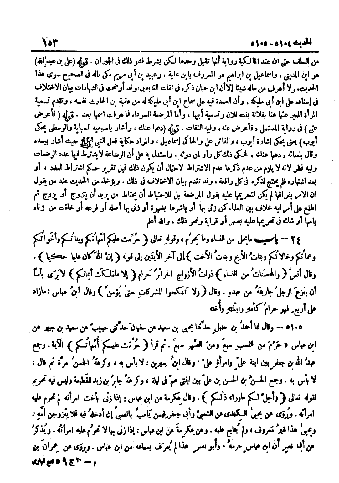 [5104] قَوْلُهُ عَلِيُّ بْنُ عَبْدِ اللَّهِ هُوَ بن الْمَدِينِيِّ وَإِسْمَاعِيلُ بْنُ إِبْرَاهِيمَ هُوَ الْمَعْرُوفُ بِابْنِ عُلَيَّةَ وَعبيد بن أبي مَرْيَم مكي مَاله فِي الصَّحِيحِ سِوَى هَذَا الْحَدِيثِ وَلَا أَعْرِفُ من حَاله شَيْئا الا أَن بن حِبَّانَ ذَكَرَهُ فِي ثِقَاتِ التَّابِعِينَ وَقَدْ أَوْضَحْتُ فِي الشَّهَادَاتِ بَيَانَ الِاخْتِلَافِ فِي إِسْنَادِهِ عَلَى بن أَبِي مُلَيْكَةَ وَأَنَّ الْعُمْدَةَ فِيهِ عَلَى سَمَاعِ بن أَبِي مُلَيْكَةَ لَهُ مِنْ عُقْبَةَ بْنِ الْحَارِثِ نَفْسِهِ وَتَقَدَّمَ تَسْمِيَةُ الْمَرْأَةِ الْمُعَبَّرِ عَنْهَا هُنَا بِفُلَانَةَ بِنْتِ فُلَانٍ وَتَسْمِيَةُ أَبِيهَا وَأَمَّا الْمُرْضِعَةُ السَّوْدَاءُ فَمَا عَرَفْتُ اسْمَهَا بَعْدُ قَوْلُهُ فَأَعْرَضَ عَنِّي فِي رِوَايَةِ الْمُسْتَمْلِي فَأَعْرَضَ عَنْهُ وَفِيهِ الْتِفَاتٌ قَوْلُهُ دَعْهَا عَنْكَ وَأَشَارَ بِإِصْبَعَيْهِ السَّبَّابَةِ وَالْوُسْطَى يَحْكِي أَيُّوبُ يَعْنِي يَحْكِي إِشَارَةَ أَيُّوبَ وَالْقَائِلُ عَلِيٌّ وَالْحَاكِي إِسْمَاعِيلُ وَالْمُرَادُ حِكَايَةُ فِعْلِ النَّبِيِّ صَلَّى اللَّهُ عَلَيْهِ وَسَلَّمَ حَيْثُ أَشَارَ بِيَدِهِ وَقَالَ بِلِسَانِهِ دَعْهَا عَنْكَ فَحَكَى ذَلِكَ كُلُّ رَاوٍ لِمَنْ دُونِهِ وَاسْتُدِلَّ بِهِ عَلَى أَنَّ الرَّضَاعَةَ لَا يُشْتَرَطُ فِيهَا عَدَدُ الرَّضَعَاتِ وَفِيهِ نَظَرٌ لِأَنَّهُ لَا يَلْزَمُ مِنْ عَدَمِ ذِكْرِهَا عَدَمُ الِاشْتِرَاطِ لِاحْتِمَالِ أَنْ يَكُونَ ذَلِكَ قَبْلَ تَقْرِيرِ حُكْمِ اشْتِرَاطِ الْعَدَدِ أَوْ بَعْدَ اشْتِهَارِهِ فَلَمْ يَحْتَجْ لِذِكْرِهِ فِي كُلِّ وَاقِعَةٍ وَقَدْ تَقَدَّمَ بَيَانُ الِاخْتِلَافِ فِي ذَلِكَ وَيُؤْخَذُ مِنَ الْحَدِيثِ عِنْدَ مَنْ يَقُولُ إِنَّ الْأَمْرَ بِفِرَاقِهَا لَمْ يَكُنْ لِتَحْرِيمِهَا عَلَيْهِ بِقَوْلِ الْمُرْضِعَةِ بَلْ لِلِاحْتِيَاطِ أَنْ يَحْتَاطَ مَنْ يُرِيدُ أَنْ يَتَزَوَّجَ أَوْ يُزَوِّجَ ثُمَّ اطَّلَعَ عَلَى أَمْرٍ فِيهِ خِلَافٌ بَيْنَ الْعُلَمَاءِ كَمَنْ زَنَى بِهَا أَوْ بَاشَرَهَا بِشَهْوَةٍ أَوْ زَنَى بِهَا أَصْلُهُ أَوْ فَرْعُهُ أَوْ خُلِقَتْ مِنْ زِنَاهُ بِأُمِّهَا أَوْ شَكَّ فِي تَحْرِيمِهَا عَلَيْهِ بِصِهْرٍ أَوْ قرَابَة وَنَحْو ذَلِك وَالله أعلم