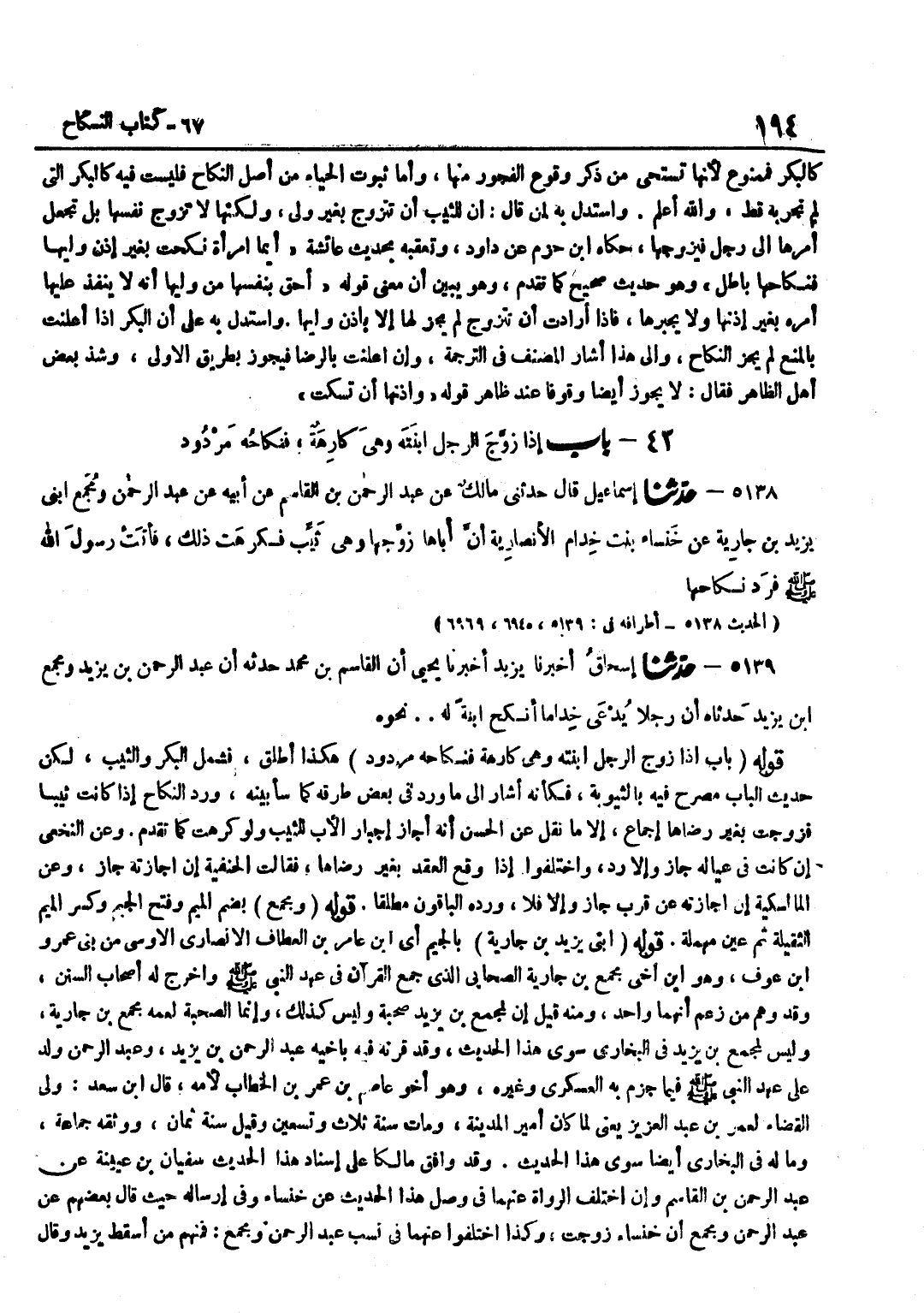 هَكَذَا أَطْلَقَ فَشَمِلَ الْبِكْرَ وَالثَّيِّبَ لَكِنَّ حَدِيثَ الْبَابِ مُصَرَّحٌ فِيهِ بِالثِّيُوبَةِ فَكَأَنَّهُ أَشَارَ إِلَى مَا وَرَدَ فِي بَعْضِ طُرُقِهِ كَمَا سَأُبَيِّنُهُ وَرَدُّ النِّكَاحِ إِذَا كَانَتْ ثَيِّبًا فَزُوِّجَتْ بِغَيْرِ رِضَاهَا إِجْمَاعٌ إِلَّا مَا نُقِلَ عَنِ الْحَسَنِ أَنَّهُ أَجَازَ إِجْبَارَ الْأَبِ لِلثَّيِّبِ وَلَوْ كَرِهَتْ كَمَا تَقَدَّمَ وَعَنِ النَّخَعِيِّ إِنْ كَانَتْ فِي عِيَالِهِ جَازَ وَإِلَّا رُدَّ وَاخْتَلَفُوا إِذَا وَقَعَ الْعَقْدُ بِغَيْرِ رِضَاهَا فَقَالَتِ الْحَنَفِيَّةُ إِنْ أَجَازَتْهُ جَازَ وَعَنِ الْمَالِكِيَّةِ إِنْ أَجَازَتْهُ عَنْ قُرْبٍ جَازَ وَإِلَّا فَلَا وَرَدَّهُ الْبَاقُونَ مُطْلَقًا