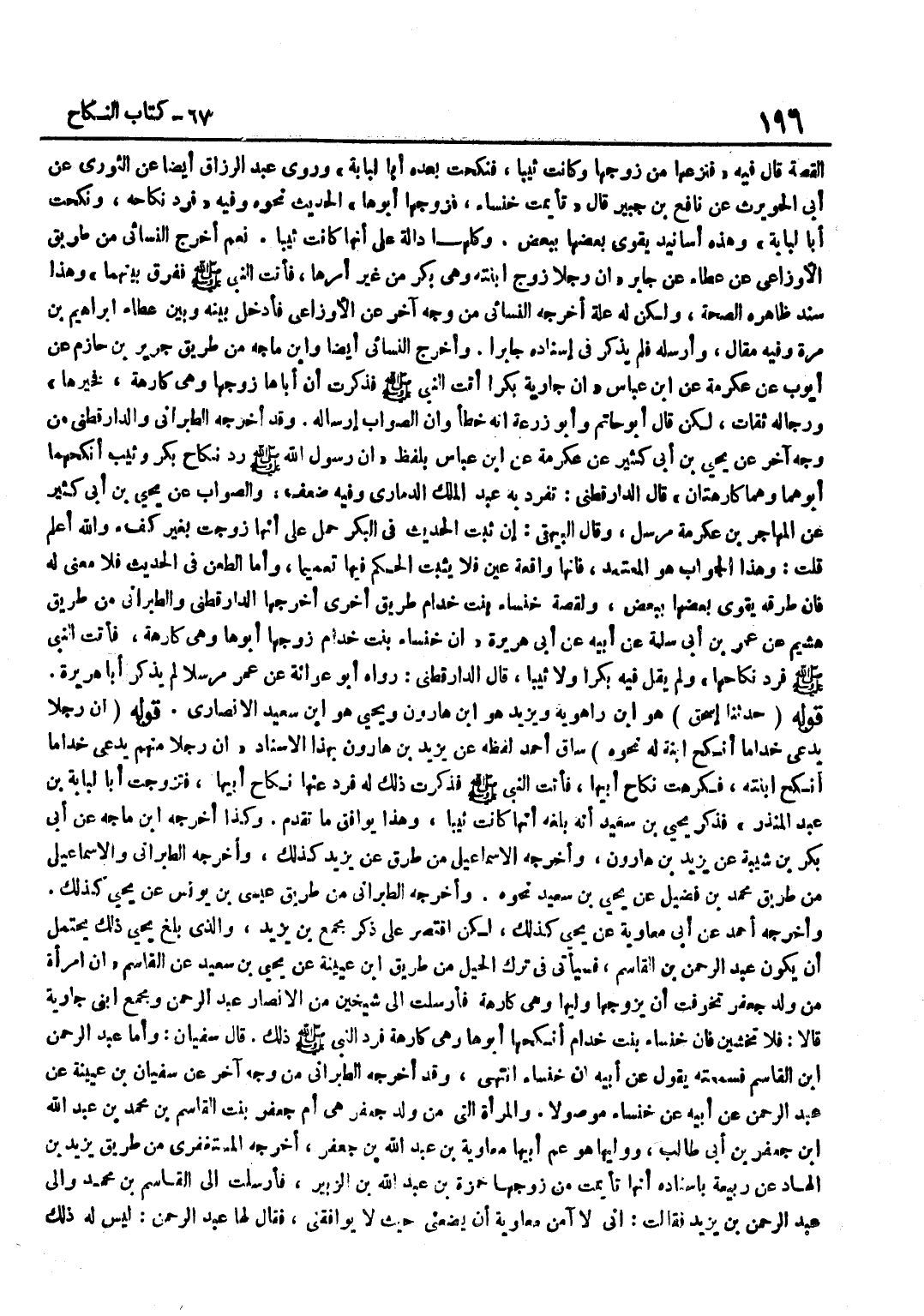 الْقِصَّةِ قَالَ فِيهِ فَنَزَعَهَا مِنْ زَوْجِهَا وَكَانَتْ ثَيِّبًا فَنَكَحَتْ بَعْدَهُ أَبَا لُبَابَةَ وَرَوَى عَبْدُ الرَّزَّاقِ أَيْضًا عَنِ الثَّوْرِيِّ عَنْ أَبِي الْحُوَيْرِثِ عَنْ نَافِعِ بْنِ جُبَيْرٍ قَالَ تَأَيَّمَتْ خَنْسَاءُ فَزَوَّجَهَا أَبُوهَا الْحَدِيثَ نَحْوَهُ وَفِيهِ فَرَدَّ نِكَاحَهُ وَنَكَحَتْ أَبَا لُبَابَةَ وَهَذِهِ أَسَانِيدُ يَقْوَى بَعْضُهَا بِبَعْض وَكلهَا دَالَّةٌ عَلَى أَنَّهَا كَانَتْ ثَيِّبًا نَعَمْ أَخْرَجَ النَّسَائِيُّ مِنْ طَرِيقِ الْأَوْزَاعِيِّ عَنْ عَطَاءٍ عَنْ جَابِرٍ أَنَّ رَجُلًا زَوَّجَ ابْنَتَهُ وَهِيَ بِكْرٌ مِنْ غَيْرِ أَمْرِهَا فَأَتَتِ النَّبِيَّ صَلَّى اللَّهُ عَلَيْهِ وَسَلَّمَ فَفَرَّقَ بَيْنَهُمَا وَهَذَا سَنَدٌ ظَاهِرُهُ الصِّحَّةُ وَلَكِنْ لَهُ عِلَّةٌ أَخْرَجَهُ النَّسَائِيُّ مِنْ وَجْهٍ آخَرَ عَنِ الْأَوْزَاعِيِّ فَأَدْخَلَ بَيْنَهُ وَبَيْنَ عَطَاءٍ إِبْرَاهِيمَ بْنَ مُرَّةَ وَفِيهِ مَقَالٌ وَأَرْسَلَهُ فَلَمْ يَذْكُرْ فِي إِسْنَادِهِ جَابِرًا وَأَخْرَجَ النَّسَائِيُّ أَيْضا وبن مَاجَهْ مِنْ طَرِيقِ جَرِيرِ بْنِ حَازِمٍ عَنْ أَيُّوبَ عَنْ عِكْرِمَةَ عَن بن عَبَّاسٍ أَنَّ جَارِيَةً بَكْرًا أَتَتِ النَّبِيَّ صَلَّى اللَّهُ عَلَيْهِ وَسَلَّمَ فَذَكَرَتْ أَنَّ أَبَاهَا زَوَّجَهَا وَهِيَ كَارِهَةٌ فَخَيَّرَهَا وَرِجَالُهُ ثِقَاتٌ لَكِنْ قَالَ أَبُو حَاتِمٍ وَأَبُو زُرْعَةَ إِنَّهُ خَطَأٌ وَأَنَّ الصَّوَابَ إِرْسَالُهُ وَقَدْ أَخْرَجَهُ الطَّبَرَانِيُّ وَالدَّارَقُطْنِيُّ مِنْ وَجْهٍ آخَرَ عَنْ يَحْيَى بْنِ أَبِي كَثِيرٍ عَنْ عِكْرِمَةَ عَن بن عَبَّاسٍ بِلَفْظِ أَنَّ رَسُولَ اللَّهِ صَلَّى اللَّهُ عَلَيْهِ وَسَلَّمَ رَدَّ نِكَاحَ بِكْرٍ وَثَيِّبٍ أَنْكَحَهُمَا أَبُوهُمَا وَهُمَا كَارِهَتَانِ قَالَ الدَّارَقُطْنِيُّ تَفَرَّدَ بِهِ عَبْدُ الْمَلِكِ الدَّمَارِيُّ وَفِيهِ ضَعْفٌ وَالصَّوَابُ عَنْ يَحْيَى بْنِ أَبِي كَثِيرٍ عَنِ الْمُهَاجِرِ بْنِ عِكْرِمَةَ مُرْسَلٌ وَقَالَ الْبَيْهَقِيُّ إِنْ ثَبَتَ الْحَدِيثُ فِي الْبِكْرِ حُمِلَ عَلَى أَنَّهَا زُوِّجَتْ بِغَيْرِ كُفْءٍ وَاللَّهُ أَعْلَمُ قُلْتُ وَهَذَا الْجَوَابُ هُوَ الْمُعْتَمَدُ فَإِنَّهَا وَاقِعَةُ عَيْنٍ فَلَا يَثْبُتُ الْحُكْمُ فِيهَا تَعْمِيمًا وَأَمَّا الطَّعْنُ فِي الْحَدِيثِ فَلَا مَعْنَى لَهُ فَإِنَّ طُرُقَهُ يَقْوَى بَعْضُهَا بِبَعْضٍ ولقصة خنساء بنت خدام طَرِيق أُخْرَى أخرجه الدَّارَقُطْنِيُّ وَالطَّبَرَانِيُّ مِنْ طَرِيقِ هُشَيْمٍ عَنْ عُمَرَ بْنِ أَبِي سَلَمَةَ عَنْ أَبِيهِ عَنْ أَبِي هُرَيْرَةَ أَنَّ خَنْسَاءَ بِنْتَ خِدَامٍ زَوَّجَهَا أَبُوهَا وَهِيَ كَارِهَةٌ فَأَتَتِ النَّبِيَّ صَلَّى اللَّهُ عَلَيْهِ وَسَلَّمَ فَرَدَّ نِكَاحَهَا وَلَمْ يَقُلْ فِيهِ بِكْرًا وَلَا ثَيِّبًا قَالَ الدَّارَقُطْنِيُّ رَوَاهُ أَبُو عَوَانَةُ عَنْ عُمَرَ مُرْسَلًا لَمْ يَذْكُرْ أَبَا هُرَيْرَةَ قَوْله حَدثنَا إِسْحَاق هُوَ بن رَاهَوَيْه وَيزِيد هُوَ بن هَارُون وَيحيى هُوَ بن سَعِيدٍ الْأَنْصَارِيُّ قَوْلُهُ أَنَّ رَجُلًا يُدْعَى خِدَامًا أَنْكَحَ ابْنَةَ لَهُ نَحْوَهُ سَاقَ أَحْمَدُ لَفْظَهُ عَنْ يَزِيدَ بْنِ هَارُونَ بِهَذَا الْإِسْنَادِ أَنَّ رَجُلًا مِنْهُمْ يُدْعَى خِدَامًا أَنْكَحَ ابْنَتَهُ فَكَرِهَتْ نِكَاحَ أَبِيهَا فَأَتَتِ النَّبِيَّ صَلَّى اللَّهُ عَلَيْهِ وَسَلَّمَ فَذَكَرْتُ ذَلِكَ لَهُ فَرَدَّ عَنْهَا نِكَاحَ أَبِيهَا فَتَزَوَّجَتْ أَبَا لُبَابَةَ بْنَ عَبْدِ الْمُنْذِرِ فَذَكَرَ يَحْيَى بْنُ سَعِيدٍ أَنَّهُ بَلَغَهُ أَنَّهَا كَانَتْ ثَيِّبًا وَهَذَا يُوَافِقُ مَا تَقَدَّمَ وَكَذَا أخرجه بن مَاجَهْ عَنْ أَبِي بَكْرِ بْنِ شَيْبَ
