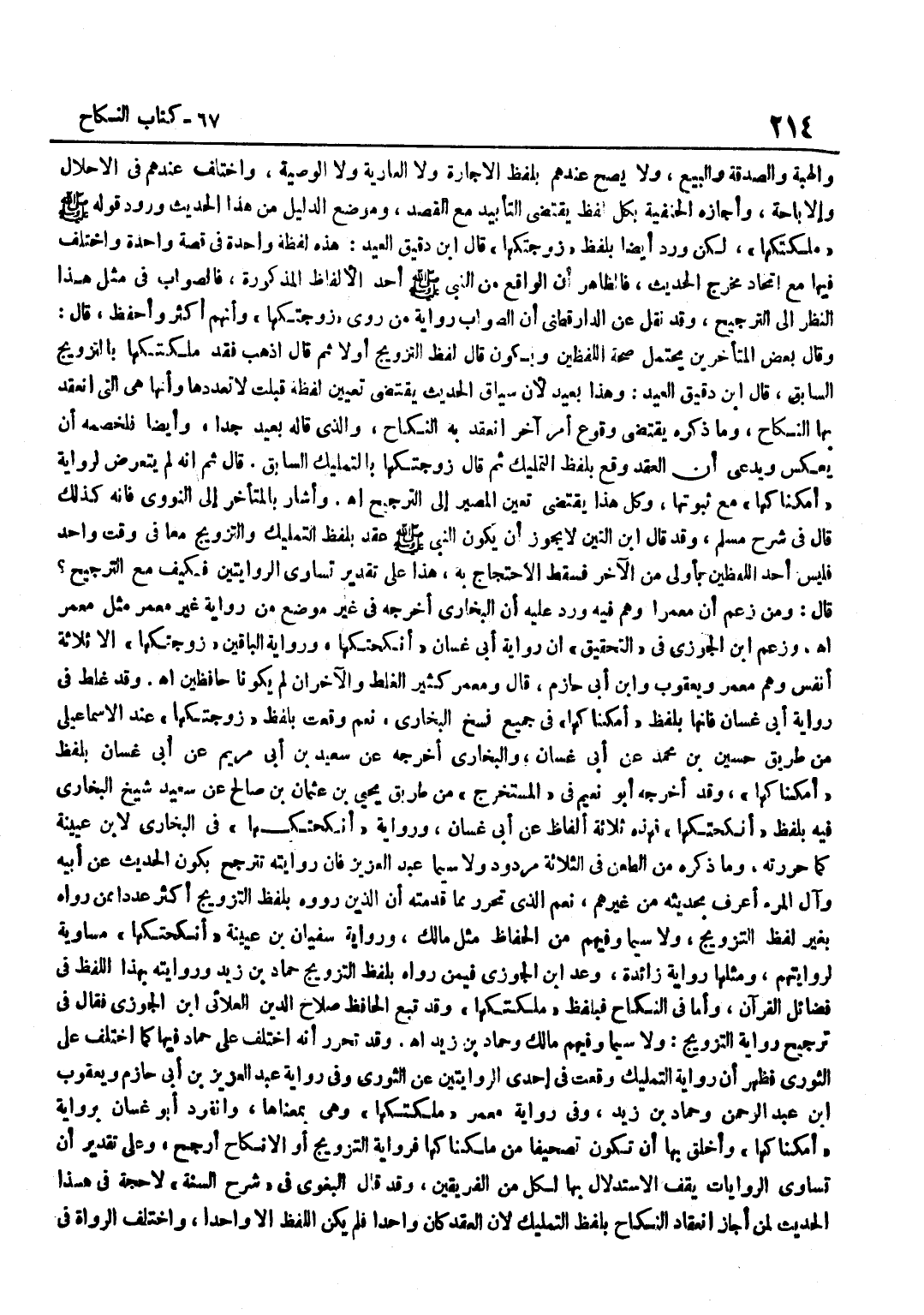 وَالْهِبَةِ وَالصَّدَقَةِ وَالْبَيْعِ وَلَا يَصِحُّ عِنْدَهُمْ بِلَفْظِ الْإِجَارَةِ وَلَا الْعَارِيَّةِ وَلَا الْوَصِيَّةِ وَاخْتُلِفَ عِنْدَهُمْ فِي الْإِحْلَالِ وَالْإِبَاحَةِ وَأَجَازَهُ الْحَنَفِيَّةُ بِكُلِّ لَفْظٍ يَقْتَضِي التَّأْبِيدَ مَعَ الْقَصْدِ وَمَوْضِعُ الدَّلِيلِ مِنْ هَذَا الْحَدِيثِ وُرُودُ قَوْلِهِ صَلَّى اللَّهُ عَلَيْهِ وَسَلَّمَ مَلَّكْتُكَهَا لَكِنْ وَرَدَ أَيْضًا بِلَفْظِ زَوَّجْتُكَهَا قَالَ بن دَقِيقِ الْعِيدِ هَذِهِ لَفْظَةٌ وَاحِدَةٌ فِي قِصَّةٍ وَاحِدَةٍ وَاخْتُلِفَ فِيهَا مَعَ اتِّحَادِ مَخْرَجِ الْحَدِيثِ فَالظَّاهِرُ أَنَّ الْوَاقِعَ مِنَ النَّبِيِّ صَلَّى اللَّهُ عَلَيْهِ وَسَلَّمَ أَحَدُ الْأَلْفَاظِ الْمَذْكُورَةِ فَالصَّوَابُ فِي مِثْلِ هَذَا النَّظَرُ إِلَى التَّرْجِيحِ وَقَدْ نُقِلَ عَنِ الدَّارَقُطْنِيِّ أَنَّ الصَّوَابَ رِوَايَةُ مَنْ رَوَى زَوَّجْتُكَهَا وَأَنَّهُمْ أَكْثَرُ وَأَحْفَظُ قَالَ وَقَالَ بَعْضُ الْمُتَأَخِّرِينَ يَحْتَمِلُ صِحَّةُ اللَّفْظَيْنِ وَيَكُونُ قَالَ لَفْظَ التَّزْوِيجِ أَوَّلًا ثُمَّ قَالَ اذْهَبْ فَقَدْ مَلَّكْتُكَهَا بِالتَّزْوِيجِ السَّابِق قَالَ بن دَقِيقِ الْعِيدِ وَهَذَا بَعِيدٌ لِأَنَّ سِيَاقَ الْحَدِيثِ يَقْتَضِي تَعْيِينَ لَفْظَةِ قَبِلْتُ لَا تَعَدُّدَهَا وَأَنَّهَا هيَ الَّتِي انْعَقَدَ بِهَا النِّكَاحُ وَمَا ذَكَرَهُ يَقْتَضِي وُقُوعُ أَمْرٍ آخَرَ انْعَقَدَ بِهِ النِّكَاحُ وَالَّذِي قَالَهُ بَعِيدٌ جِدًّا وَأَيْضًا فَلِخَصْمِهِ أَنْ يَعْكِسَ وَيَدَّعِيَ أَنَّ الْعَقْدَ وَقَعَ بِلَفْظِ التَّمْلِيكِ ثُمَّ قَالَ زَوَّجْتُكَهَا بِالتَّمْلِيكِ السَّابِقِ قَالَ ثُمَّ إِنَّهُ لَمْ يَتَعَرَّضْ لِرِوَايَةِ أَمْكَنَّاكَهَا مَعَ ثُبُوتِهَا وَكُلُّ هَذَا يَقْتَضِي تَعَيُّنَ الْمَصِيرِ إِلَى التَّرْجِيحِ اه وَأَشَارَ بِالْمُتَأَخِّرِ إِلَى النَّوَوِيِّ فَإِنَّهُ كَذَلِكَ قَالَ فِي شرح مُسلم وَقد قَالَ بن التِّينِ لَا يَجُوزُ أَنْ يَكُونَ النَّبِيُّ صَلَّى اللَّهُ عَلَيْهِ وَسَلَّمَ عَقَدَ بِلَفْظِ التَّمْلِيكِ وَالتَّزْوِيجِ مَعًا فِي وَقْتٍ وَاحِدٍ فَلَيْسَ أَحَدُ اللَّفْظَيْنِ بِأَوْلَى مِنَ الْآخَرِ فَسَقَطَ الِاحْتِجَاجُ بِهِ هَذَا عَلَى تَقْدِيرِ تَسَاوِي الرِّوَايَتَيْنِ فَكَيْفَ مَعَ التَّرْجِيحِ قَالَ وَمَنْ زَعَمَ أَنَّ مَعْمَرًا وَهِمَ فِيهِ وَرُدَّ عَلَيْهِ أَنَّ الْبُخَارِيَّ أَخْرَجَهُ فِي غَيْرِ مَوْضِعٍ مِنْ رِوَايَةِ غَيْرِ مَعْمَرٍ مِثْلَ مَعْمَرٍ اه وَزعم بن الْجَوْزِيِّ فِي التَّحْقِيقِ أَنَّ رِوَايَةَ أَبِي غَسَّانَ أَنْكَحْتُكَهَا وَرِوَايَةَ الْبَاقِينَ زَوَّجْتُكَهَا إِلَّا ثَلَاثَةَ أَنْفُسٍ وهم معمر وَيَعْقُوب وبن أَبِي حَازِمٍ قَالَ وَمَعْمَرٌ كَثِيرُ الْغَلَطِ وَالْآخَرَانِ لَمْ يَكُونَا حَافِظَيْنِ اه وَقَدْ غَلِطَ فِي رِوَايَةِ أَبِي غَسَّانَ فَإِنَّهَا بِلَفْظِ أَمْكَنَّاكَهَا فِي جَمِيعِ نُسَخِ الْبُخَارِيِّ نَعَمْ وَقَعَتْ بِلَفْظِ زَوَّجْتُكَهَا عِنْدَ الْإِسْمَاعِيلِيُّ مِنْ طَرِيقِ حُسَيْنِ بْنِ مُحَمَّدٍ عَنْ أَبِي غَسَّانَ وَالْبُخَارِيِّ أَخْرَجَهُ عَنْ سَعِيدِ بْنِ أَبِي مَرْيَمَ عَنْ أَبِي غَسَّانَ بِلَفْظِ أَمْكَنَّاكَهَا وَقَدْ أَخْرَجَهُ أَبُو نُعَيْمٍ فِي الْمُسْتَخْرَجِ مِنْ طَرِيقِ يَحْيَى بْنِ عُثْمَانَ بْنِ صَالِحٍ عَنْ سَعِيدٍ شَيْخِ الْبُخَارِيِّ فِيهِ بِلَفْظِ أَنْكَحْتُكَهَا فَهَذِهِ ثَلَاثَةُ أَلْفَاظٍ عَنْ أَبِي غَسَّانَ وَرِوَايَةُ أَنْكَحْتُكَهَا فِي الْبُخَارِيِّ لِابْنِ عُيَيْنَةَ كَمَا حَرَّرْتُهُ وَمَا ذَكَرَهُ مِنَ الطَّعْنِ فِي الثَّلَاثَةِ مَرْدُودٌ وَلَا سِيَّمَا عَبْدَ الْعَزِيزِ فَإِنَّ رِوَايَت