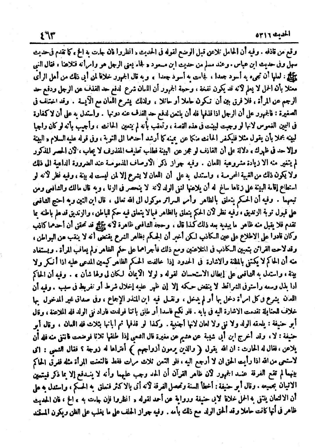 وَقَعَ مِنْ قَاذِفِهِ وَفِيهِ أَنَّ الْحَامِلَ تُلَاعَنُ قَبْلَ الْوَضْعِ لِقَوْلِهِ فِي الْحَدِيثِ انْظُرُوا فَإِنْ جَاءَتْ بِهِ إِلَخْ كَمَا تَقَدَّمَ فِي حَدِيثِ سهل وَفِي حَدِيث بن عَبَّاس وَعند مُسلم من حَدِيث بن مَسْعُودٍ فَجَاءَ يَعْنِي الرَّجُلَ هُوَ وَامْرَأَتُهُ فَتَلَاعَنَا فَقَالَ النَّبِيُّ صَلَّى اللَّهُ عَلَيْهِ وَسَلَّمَ لَعَلَّهَا أَنْ تَجِيءَ بِهِ أَسْوَدَ جَعْدًا فَجَاءَتْ بِهِ أَسْوَدَ جَعْدًا وَبِهِ قَالَ الْجُمْهُورُ خِلَافًا لِمَنْ أَبَى ذَلِكَ مِنْ أَهْلِ الرَّأْيِ مُعْتَلًّا بِأَنَّ الْحَمْلَ لَا يُعْلَمُ لِأَنَّهُ قَدْ يَكُونُ نَفْخَةً وَحُجَّةُ الْجُمْهُورِ أَنَّ اللِّعَانَ شُرِعَ لِدَفْعِ حَدِّ الْقَذْفِ عَنِ الرَّجُلِ وَدَفْعِ حَدِّ الرَّجْمِ عَنِ الْمَرْأَةِ فَلَا فَرْقَ بَيْنَ أَنْ تَكُونَ حَامِلًا أَوْ حَائِلًا وَلِذَلِكَ يُشْرَعُ اللِّعَانُ مَعَ الْآيِسَةِ وَقَدِ اخْتُلِفَ فِي الصَّغِيرَةِ فَالْجُمْهُورُ عَلَى أَنَّ الرَّجُلَ إِذَا قَذَفَهَا فَلَهُ أَنْ يَلْتَعِنَ لِدَفْعِ حَدِّ الْقَذْفِ عَنْهُ دُونَهَا وَاسْتُدِلَّ بِهِ عَلَى أَنْ لَا كَفَّارَةَ فِي الْيَمِينِ الْغَمُوسِ لِأَنَّهَا لَوْ وَجَبَتْ لَبَيَّنْتُ فِي هَذِهِ الْقِصَّةِ وَتُعُقِّبَ بِأَنَّهُ لَمْ يَتَعَيَّنِ الْحَانِثُ وَأُجِيبَ بِأَنَّهُ لَوْ كَانَ وَاجِبًا لَبَيَّنَهُ مُجْمَلًا بِأَنْ يَقُولَ مَثَلًا فَلْيُكَفِّرِ الْحَانِثُ مِنْكُمَا عَنْ يَمِينِهِ كَمَا أَرْشَدَ أَحَدَهُمَا إِلَى التَّوْبَةِ وَفِي قَوْلِهِ عَلَيْهِ السَّلَامُ الْبَيِّنَةُ وَإِلَّا حَدٌّ فِي ظَهْرِكَ دَلَالَةٌ عَلَى أَنَّ الْقَاذِفَ لَوْ عَجَزَ عَنِ الْبَيِّنَةِ فَطَلَبَ تَحْلِيفَ الْمَقْذُوفِ لَا يُجَابُ لِأَنَّ الْحَصْرَ الْمَذْكُورَ لَمْ يَتَغَيَّرْ مِنْهُ إِلَّا زِيَادَةُ مَشْرُوعِيَّةِ اللِّعَانِ وَفِيهِ جَوَازُ ذِكْرِ الْأَوْصَافِ الْمَذْمُومَةِ عِنْدَ الضَّرُورَةِ الدَّاعِيَةِ إِلَى ذَلِكَ وَلَا يَكُونُ ذَلِكَ مِنَ الْغِيبَةِ الْمُحَرَّمَةِ وَاسْتُدِلَّ بِهِ عَلَى أَنَّ اللِّعَانَ لَا يُشْرَعُ إِلَّا لِمَنْ لَيْسَتْ لَهُ بَيِّنَةٌ وَفِيهِ نَظَرٌ لِأَنَّهُ لَوِ اسْتَطَاعَ إِقَامَةَ الْبَيِّنَةِ عَلَى زِنَاهَا سَاغَ لَهُ أَنْ يُلَاعِنَهَا لِنَفْيِ الْوَلَدِ لِأَنَّهُ لَا يَنْحَصِرُ فِي الزِّنَا وَبِهِ قَالَ مَالِكٌ وَالشَّافِعِيُّ وَمَنْ تَبِعَهُمَا وَفِيهِ أَنَّ الْحُكْمَ يَتَعَلَّقُ بِالظَّاهِرِ وَأَمْرُ السَّرَائِرِ مَوْكُولٌ إِلَى الله تَعَالَى قَالَ بن التِّينِ وَبِهِ احْتَجَّ الشَّافِعِيُّ عَلَى قَبُولِ تَوْبَةِ الزِّنْدِيقِ وَفِيهِ نَظَرٌ لِأَنَّ الْحُكْمَ يَتَعَلَّقُ بِالظَّاهِرِ فِيمَا لَا يَتَعَلَّقُ فِيهِ حُكْمٌ لِلْبَاطِنِ وَالزِّنْدِيقُ قَدْ عُلِمَ بَاطِنُهُ بِمَا تَقَدَّمَ فَلَا يُقْبَلُ مِنْهُ ظَاهِرُ مَا يُبْدِيهِ بَعْدَ ذَلِكَ كَذَا قَالَ وَحُجَّةُ الشَّافِعِيِّ ظَاهِرَةٌ لِأَنَّهُ صَلَّى اللَّهُ عَلَيْهِ وَسَلَّمَ قَدْ تَحَقَّقَ أَنَّ أَحَدَهُمَا كَاذِبٌ وَكَانَ قَادِرًا عَلَى الِاطِّلَاعِ عَلَى عَيْنِ الْكَاذِبِ لَكِنْ أَخْبَرَ أَنَّ الْحُكْمَ بِظَاهِرِ الشَّرْعِ يَقْتَضِي أَنَّهُ لَا يُنَقِّبُ عَنِ الْبَوَاطِنِ وَقَدْ لَاحَتِ الْقَرَائِنُ بِتَعْيِينِ الْكَاذِبِ فِي الْمُتَلَاعِنَيْنِ وَمَعَ ذَلِكَ فَأَجْرَاهُمَا عَلَى حُكْمِ الظَّاهِرِ وَلَمْ يُعَاقِبِ الْمَرْأَةَ وَيُسْتَفَادُ مِنْهُ أَنَّ الْحَاكِمَ لَا يَكْتَفِي بِالْمَظِنَّةِ وَالْإِشَارَةِ فِي الْحُدُودِ إِذَا خَالَفَتِ الْحُكْمَ الظَّاهِرَ كَيَمِينِ الْمُدَّعَى عَلَيْهِ إِذَا أَنْكَرَ وَلَا بَيِّنَةَ وَاسْتَدَلَّ بِهِ الشَّافِعِيُّ عَلَى إِبْطَالِ الِاسْتِحْسَانِ لِقَوْلِهِ لَوْلَا الْ