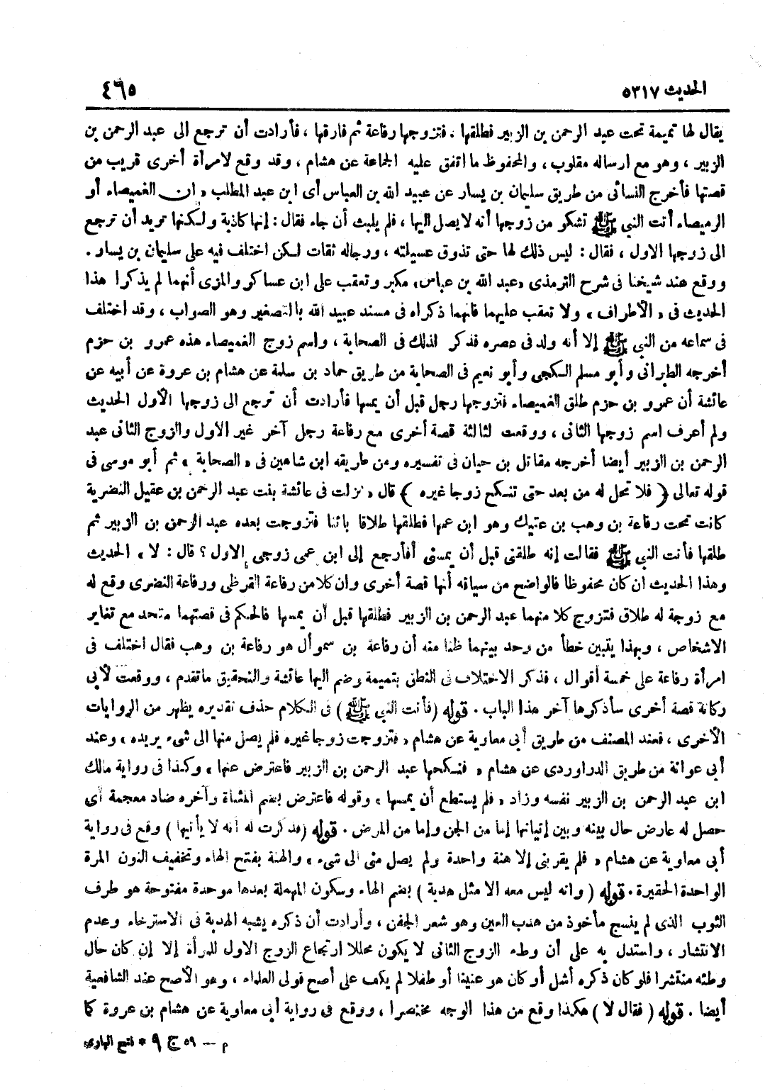 يُقَالُ لَهَا تَمِيمَةُ تَحْتَ عَبْدِ الرَّحْمَنِ بْنِ الزَّبِيرِ فَطَلَّقَهَا فَتَزَوَّجَهَا رِفَاعَةَ ثُمَّ فَارَقَهَا فَأَرَادَتْ أَنْ تَرْجِعَ إِلَى عَبْدِ الرَّحْمَنِ بْنِ الزَّبِيرِ وَهُوَ مَعَ إِرْسَالِهِ مَقْلُوبٌ وَالْمَحْفُوظُ مَا اتَّفَقَ عَلَيْهِ الْجَمَاعَةُ عَنْ هِشَامٍ وَقَدْ وَقَعَ لِامْرَأَةٍ أُخْرَى قَرِيبٌ مِنْ قِصَّتِهَا فَأَخْرَجَ النَّسَائِيُّ مِنْ طَرِيقِ سُلَيْمَانَ بْنِ يَسَارٍ عَنْ عُبَيْدِ اللَّهِ بْنِ الْعَبَّاس أَي بن عَبْدِ الْمُطَّلِبِ أَنَّ الْغُمَيْصَاءَ أَوِ الرُّمَيْصَاءَ أَتَتِ النَّبِيَّ صَلَّى اللَّهُ عَلَيْهِ وَسَلَّمَ تَشْكُو مِنْ زَوْجِهَا أَنَّهُ لَا يَصِلُ إِلَيْهَا فَلَمْ يَلْبَثْ أَنْ جَاءَ فَقَالَ إِنَّهَا كَاذِبَةٌ وَلَكِنَّهَا تُرِيدُ أَنْ تَرْجِعَ إِلَى زَوْجِهَا الْأَوَّلِ فَقَالَ لَيْسَ ذَلِكَ لَهَا حَتَّى تَذُوقَ عُسَيْلَتَهُ وَرِجَالُهُ ثِقَاتٌ لَكِنِ اخْتُلِفَ فِيهِ عَلَى سُلَيْمَانَ بْنِ يَسَارٍ وَوَقَعَ عِنْدَ شَيْخِنَا فِي شَرْحِ التِّرْمِذِيِّ عَبْدُ الله بن عَبَّاس مكبر وَتعقب على بن عَسَاكِرَ وَالْمِزِّيِّ أَنَّهُمَا لَمْ يَذْكُرَا هَذَا الْحَدِيثَ فِي الْأَطْرَافِ وَلَا تَعَقُّبَ عَلَيْهِمَا فَإِنَّهُمَا ذَكَرَاهُ فِي مُسْنَدِ عُبَيْدِ اللَّهِ بِالتَّصْغِيرِ وَهُوَ الصَّوَابُ وَقَدِ اخْتُلِفَ فِي سَمَاعُهُ مِنَ النَّبِيِّ صَلَّى اللَّهُ عَلَيْهِ وَسَلَّمَ إِلَّا أَنَّهُ وُلِدَ فِي عَصْرِهِ فَذُكِرَ لِذَلِكَ فِي الصَّحَابَةِ وَاسْمُ زَوْجِ الْغُمَيْصَاءِ هَذِهِ عَمْرُو بْنُ حَزْمٍ أَخْرَجَهُ الطَّبَرَانِيُّ وَأَبُو مُسْلِمٍ الْكَجِّيُّ وَأَبُو نُعَيْمٍ فِي الصَّحَابَةِ مِنْ طَرِيقِ حَمَّادِ بْنِ سَلَمَةَ عَنْ هِشَامِ بْنِ عُرْوَةَ عَنْ أَبِيهِ عَنْ عَائِشَةَ أَنَّ عَمْرَو بْنَ حَزْمٍ طَلَّقَ الْغُمَيْصَاءَ فَتَزَوَّجَهَا رَجُلٌ قَبْلَ أَنْ يَمَسَّهَا فَأَرَادَتْ أَنْ تَرْجِعَ إِلَى زَوْجِهَا الْأَوَّلِ الْحَدِيثَ وَلَمْ أَعْرِفِ اسْمَ زَوْجِهَا الثَّانِي وَوَقَعَتْ لِثَالِثَةٍ قِصَّةٌ أُخْرَى مَعَ رِفَاعَةَ رَجُلٌ آخَرُ غَيْرُ الْأَوَّلِ وَالزَّوْجُ الثَّانِي عَبْدُ الرَّحْمَنِ بْنُ الزَّبِيرِ أَيْضًا أَخْرَجَهُ مُقَاتِلُ بْنُ حَيَّان فِي تَفْسِيره وَمن طَرِيقه بن شاهين فِي الصَّحَابَة ثمَّ أَبُو مُوسَى فِي قَوْلُهُ تَعَالَى فَلَا تَحِلُّ لَهُ مِنْ بَعْدُ حَتَّى تنْكح زوجا غَيره قَالَ نَزَلَتْ فِي عَائِشَةَ بِنْتِ عَبْدِ الرَّحْمَنِ بْنِ عَقِيلٍ النَّضْرِيَّةِ كَانَتْ تَحْتَ رِفَاعَةَ بْنِ وهب بن عتِيك وَهُوَ بن عَمِّهَا فَطَلَّقَهَا طَلَاقًا بَائِنًا فَتَزَوَّجَتْ بَعْدَهُ عَبْدَ الرَّحْمَنِ بْنَ الزَّبِيرِ ثُمَّ طَلَّقَهَا فَأَتَتِ النَّبِيَّ صَلَّى اللَّهُ عَلَيْهِ وَسَلَّمَ فَقَالَتْ إِنَّهُ طَلَّقَنِي قبل أَن يمسني أفأرجع إِلَى بن عَمِّي زَوْجِي الْأَوَّلِ قَالَ لَا الْحَدِيثَ وَهَذَا الْحَدِيثُ إِنْ كَانَ مَحْفُوظًا فَالْوَاضِحُ مِنْ سِيَاقِهِ أَنَّهَا قِصَّةٌ أُخْرَى وَأَنَّ كُلًّا مِنْ رِفَاعَةَ الْقُرَظِيِّ وَرِفَاعَةَ النَّضْرِيِّ وَقَعَ لَهُ مَعَ زَوْجَةٍ لَهُ طَلَاقٌ فَتَزَوَّجَ كُلًّا مِنْهُمَا عَبْدُ الرَّحْمَنِ بْنُ الزَّبِيرِ فَطَلَّقَهَا قَبْلَ أَنْ يَمَسَّهَا فَالْحُكْمُ فِي قِصَّتِهِمَا مُتَّحِدٌ مَعَ تَغَايُرِ الْأَشْخَاصِ وَبِهَذَا يَتَبَيَّنُ خَطَأُ مَنْ وَحَّدَ بَيْنَهُمَا ظَنًّا مِنْهُ أَنَّ رِفَاعَةَ بْنَ سَمَوْأَلٍ هُوَ رِفَاعَةُ بْنُ وَهْبٍ فَقَالَ اخْتُلِفَ فِي امْرَأَةِ رِفَاعَةَ عَلَى خَمْسَةِ أَقْوَالٍ فَذَكَرَ الِاخْتِلَافَ فِي النُّطْقِ بِتَمِيمَةَ وَضَمَّ إِلَيْهَا عَائِشَةَ وَالتَّحْقِيقُ مَا تَقَدَّمَ وَوَقَعَتْ لِأَبِي رُكَانَةَ قِصَّةٌ أُ