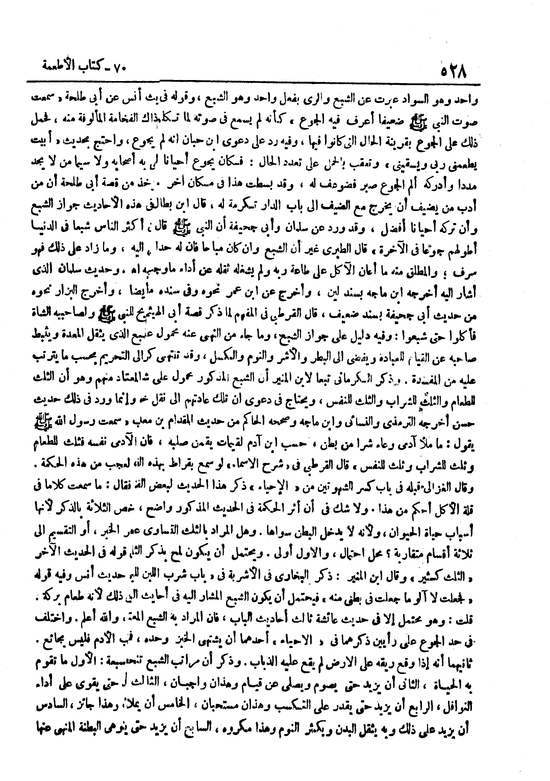 [5381] فِي حَدِيثِ أَنَسٍ عَنْ أَبِي طَلْحَةَ سَمِعْتُ صَوْتَ النَّبِيِّ صَلَّى اللَّهُ عَلَيْهِ وَسَلَّمَ ضَعِيفًا أَعْرِفُ فِيهِ الْجُوعَ كَأَنَّهُ لَمْ يَسْمَعْ فِي صَوْتِهِ لِمَا تَكَلَّمَ إِذْ ذَاكَ الْفَخَامَةَ الْمَأْلُوفَةَ مِنْهُ فَحَمَلَ ذَلِكَ عَلَى الْجُوعِ بِقَرِينَةِ الْحَالِ الَّتِي كَانُوا فِيهَا وَفِيه رد على دَعْوَى بن حِبَّانَ أَنَّهُ لَمْ يَكُنْ يَجُوعُ وَاحْتَجَّ بِحَدِيثِ أَبَيْتُ يُطْعِمُنِي رَبِّي وَيَسْقِينِي وَتُعُقِّبَ بِالْحَمْلِ عَلَى تَعَدُّدِ الْحَالِ فَكَانَ يَجُوعُ أَحْيَانَا لِيَتَأَسَّى بِهِ أَصْحَابُهُ وَلَا سِيَّمَا مَنْ لَا يَجِدُ مَدَدًا وَأَدْرَكَهُ أَلَمُ الْجُوعِ صَبَرَ فَضُوعِفَ لَهُ وَقَدْ بسطت هَذَا فِي مَكَان آخر ويوخذ مِنْ قِصَّةِ أَبِي طَلْحَةَ أَنَّ مِنْ أَدَبِ مَنْ يُضِيفُ أَنْ يَخْرُجَ مَعَ الضَّيْفِ إِلَى بَاب الدَّار تكرمة لَهُ قَالَ بن بَطَّالٍ فِي هَذِهِ الْأَحَادِيثِ جَوَازُ الشِّبَعِ وَأَنَّ تَرْكَهُ أَحْيَانَا أَفْضَلُ وَقَدْ وَرَدَ عَنْ سَلْمَانَ وَأَبِي جُحَيْفَةَ أَنَّ النَّبِيَّ صَلَّى اللَّهُ عَلَيْهِ وَسَلَّمَ قَالَ إِنَّ أَكْثَرَ النَّاسِ شِبَعًا فِي الدُّنْيَا أَطْوَلُهُمْ جُوعًا فِي الْآخِرَةِ قَالَ الطَّبَرِيُّ غَيْرَ أَنَّ الشِّبَعِ وَإِنْ كَانَ مُبَاحًا فَإِنَّ لَهُ حَدًّا يَنْتَهِي إِلَيْهِ وَمَا زَادَ عَلَى ذَلِكَ فَهُوَ سَرَفٌ وَالْمُطْلَقُ مِنْهُ مَا أَعَانَ الْآكِلَ عَلَى طَاعَةِ رَبِّهِ وَلَمْ يَشْغَلْهُ ثِقَلُهُ عَنْ أَدَاءِ مَا وَجَبَ عَلَيْهِ اه وَحَدِيثُ سلمَان الَّذِي أَشَارَ إِلَيْهِ أخرجه بن ماجة بِسَنَد لين وَأخرج عَن بن عُمَرَ نَحْوَهُ وَفِي سَنَدِهِ مَقَالٌ أَيْضًا وَأَخْرَجَ الْبَزَّارُ نَحْوَهُ مِنْ حَدِيثِ أَبِي جُحَيْفَةَ بِسَنَدٍ ضَعِيفٍ قَالَ الْقُرْطُبِيُّ فِي الْمُفْهِمِ لَمَّا ذَكَرَ قِصَّةَ أَبِي الْهَيْثَمِ إِذْ ذَبَحَ لِلنَّبِيِّ صَلَّى اللَّهُ عَلَيْهِ وَسَلَّمَ وَلِصَاحِبَيْهِ الشَّاةَ فَأَكَلُوا حَتَّى شَبِعُوا وَفِيهِ دَلِيلٌ عَلَى جَوَازِ الشِّبَعِ وَمَا جَاءَ مِنَ النَّهْيِ عَنْهُ مَحْمُولٌ عَلَى الشِّبَعِ الَّذِي يُثْقِلُ الْمَعِدَةَ وَيُثَبِّطُ صَاحِبَهُ عَنِ الْقِيَامِ لِلْعِبَادَةِ وَيُفْضِي إِلَى الْبَطَرِ وَالْأَشَرِّ وَالنَّوْمِ وَالْكَسَلِ وَقَدْ تَنْتَهِي كَرَاهَتُهُ إِلَى التَّحْرِيمِ بِحَسَبِ مَا يَتَرَتَّبُ عَلَيْهِ مِنَ الْمَفْسَدَةِ وَذَكَرَ الْكِرْمَانِيُّ تَبَعًا لِابْنِ الْمُنِيرِ أَنَّ الشِّبَعَ الْمَذْكُورَ مَحْمُولٌ عَلَى شبعهم الْمُعْتَاد مِنْهُم وَهُوَ أَن الثُّلُث الطَّعَام وَالثُّلُثَ لِلشَّرَابِ وَالثُّلُثَ لِلنَّفْسِ وَيَحْتَاجُ فِي دَعْوَى أَنَّ تِلْكَ عَادَتُهُمْ إِلَى نَقْلٍ خَاصٍّ وَإِنَّمَا وَرَدَ فِي ذَلِكَ حَدِيثٌ حَسَنٌ أَخْرَجَهُ التِّرْمِذِيُّ وَالنَّسَائِيّ وبن مَاجَهْ وَصَحَّحَهُ الْحَاكِمُ مِنْ حَدِيثِ الْمِقْدَامِ بْنِ معد يكرب سَمِعْتُ رَسُولَ اللَّهِ صَلَّى اللَّهُ عَلَيْهِ وَسَلَّمَ يَقُولُ مَا مَلَأَ آدَمِيٌ وِعَاءً شَرًّا مِنْ بطن حسب بن آدَمَ لُقَيْمَاتٌ يُقِمْنَ صُلْبَهُ فَإِنْ غَلَبَ الْآدَمِيَّ نَفْسُهُ فَثُلُثٌ لِلطَّعَامِ وَثُلُثٌ لِلشَّرَابِ وَثُلُثٌ لِلنَّفَسِ قَالَ الْقُرْطُبِيُّ فِي شَرْحِ الْأَسْمَاءِ لَوْ سَمِعَ بُقْرَاطُ بِهَذِهِ الْقِسْمَةِ لَعَجِبَ مِنْ هَذِهِ الْحِكْمَةِ وَقَالَ الْغَزَالِيُّ قَبْلَهُ فِي بَابِ كَسْرِ الشَّهْوَتَيْنِ مِنْ الْإِحْيَاءِ ذُكِرَ هَذَا الْحَدِيثُ لِبَعْضِ الْفَلَاسِفَةِ فَقَالَ مَا سَمِعْتُ كَلَامًا فِي قِلَّةِ الْأَكْلِ أَحْكَمَ مِنْ هَذَا وَلَا شَكَّ فِي أَنَّ أَثَرَ الْحِكْمَةِ فِي الْحَدِيثِ الْمَذْكُورِ وَاضِحٌ وَإِنَّمَا خُصَّ الثَّلَاثَةُ بِالذ