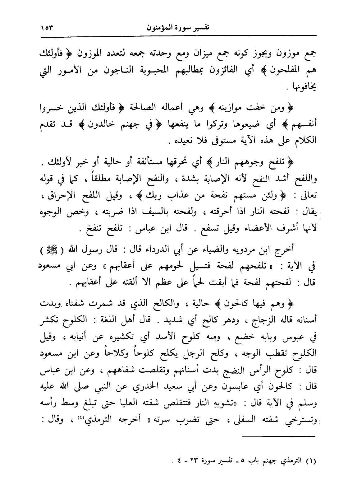 (¬1) الترمذي جهنم باب 5 - تفسير سورة 23 - 4.