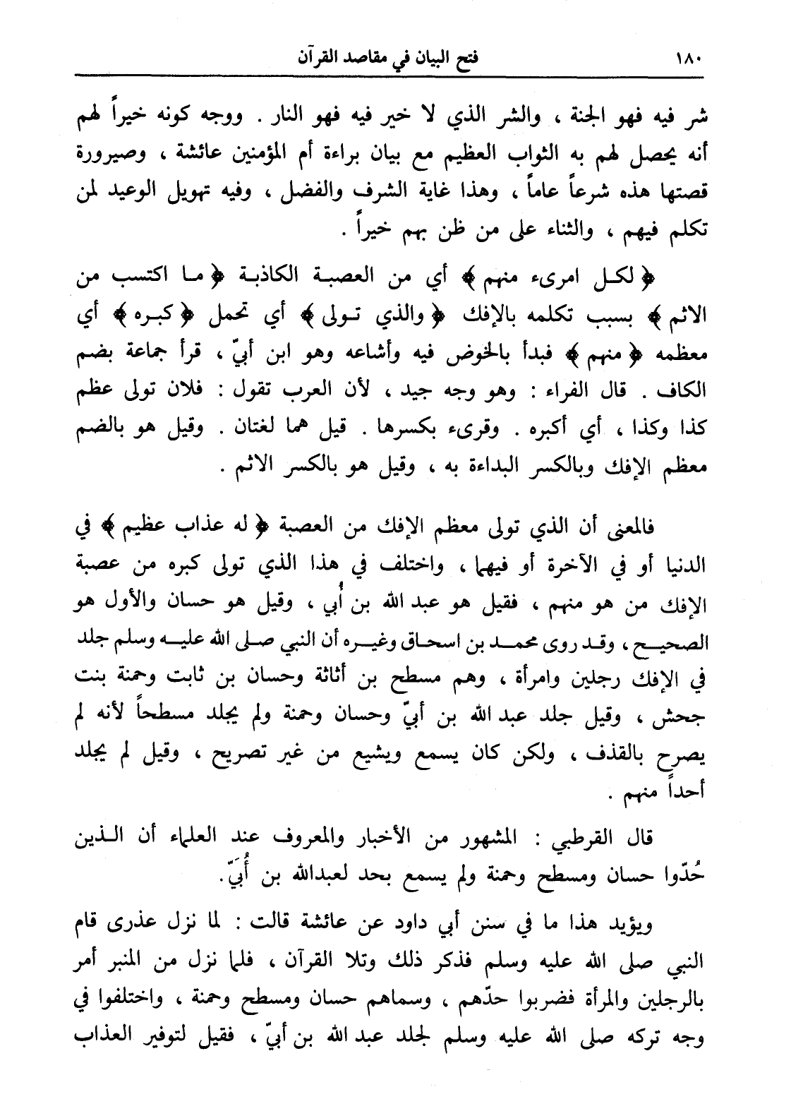قال القرطبي: المشهور من الأخبار والمعروف عند العلماء أن الذين حُدّوا حسان ومسطح وحمنة ولم يسمع بحد لعبد الله بن أُبَيّ.