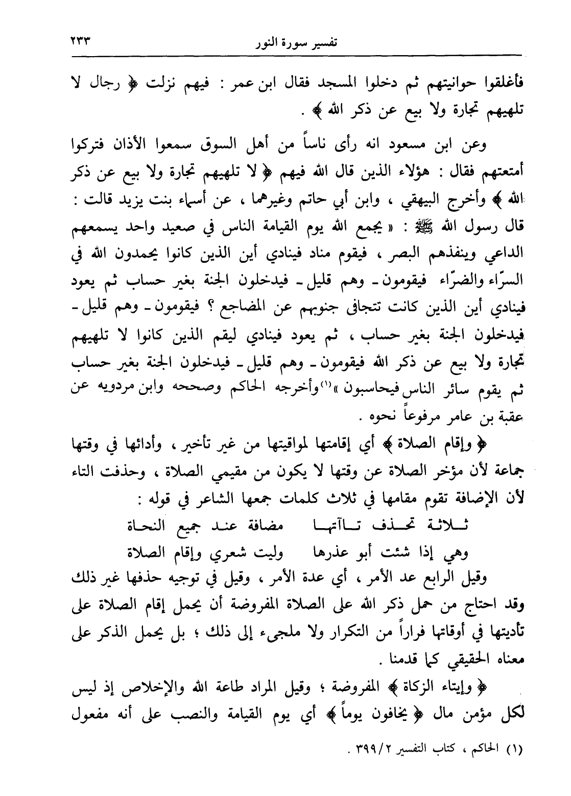 (¬1) الحاكم، كتاب التفسير 2/ 399.