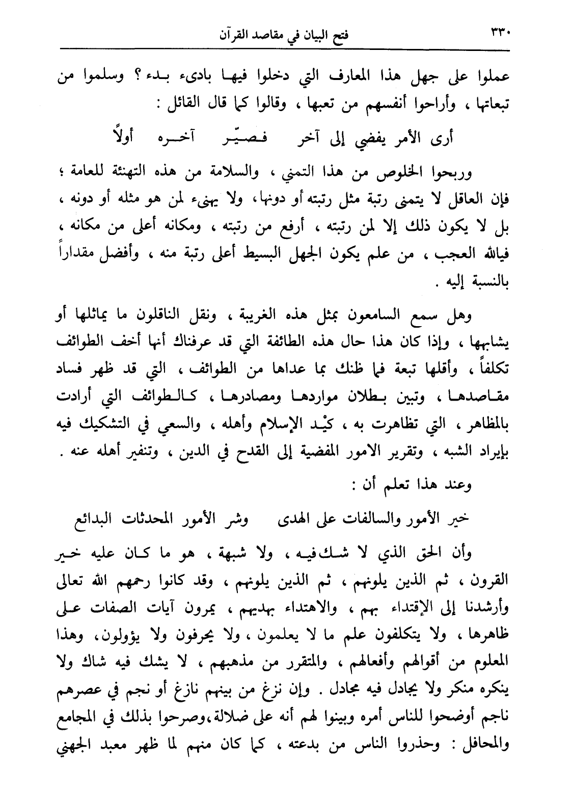 خير الأمور والسالفات على الهدى .. وشر الأمور المحدثات البدائع