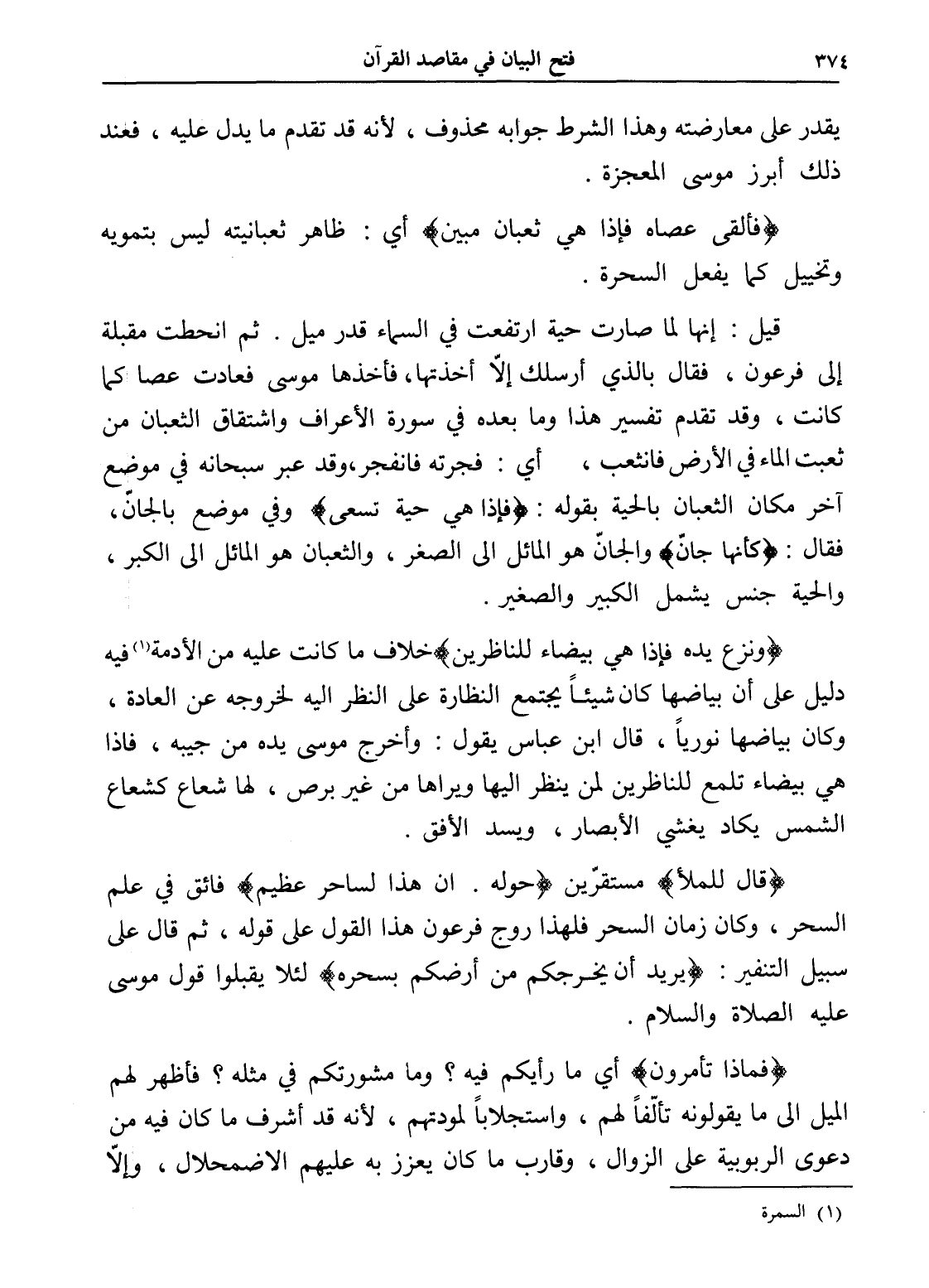 (قال للملأ) مستقرين (حوله إن هذا لساحر عليم) فائق في علم السحر، وكان زمان السحر فلهذا روج فرعون هذا القول على قوله، ثم قال على سبيل التنفير: