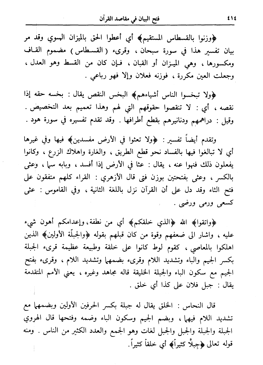 وتقدم أيضاً تفسير: (ولا تعثوا في الأرض مفسدين) فيها وفي غيرها أي لا تبالغوا فيها بالفساد نحو قطع الطريق، والغارة وإهلاك الزرع، وكانوا يفعلون ذلك فنهوا عنه، يقال: عثا في الأرض إذا أفسد، وبابه سما، وعثى بالكسر، وعثى بفتحتين بوزن فتى قال الأزهري: القراء كلهم متفقون على فتح الثاء وقد دل على أن القرآن نزل باللغة الثانية، وفي القاموس: عثى كسعى ورمى ورضى.