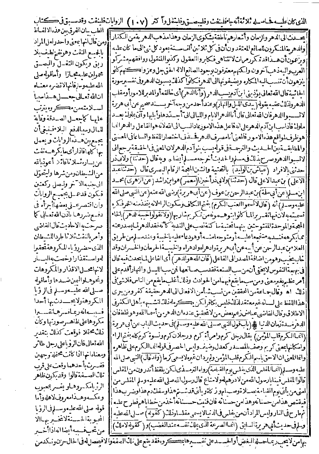 وقال جماعة من المحققين: من نسب شيئًا من الأفعال إلى الدهر حقيقة كفر ومن جرى هذا اللفظ على لسانه غير معتقد لذلك فليس بكافر لكن يكره له ذلك لتشبهه بأهل الكفر في الإطلاق. وقال القاضي عياض: زعم بعض من لا تحقيق عنده أن الدهر من أسماء الله وهو غلط فإن الدهر مدة زمان الدنيا.