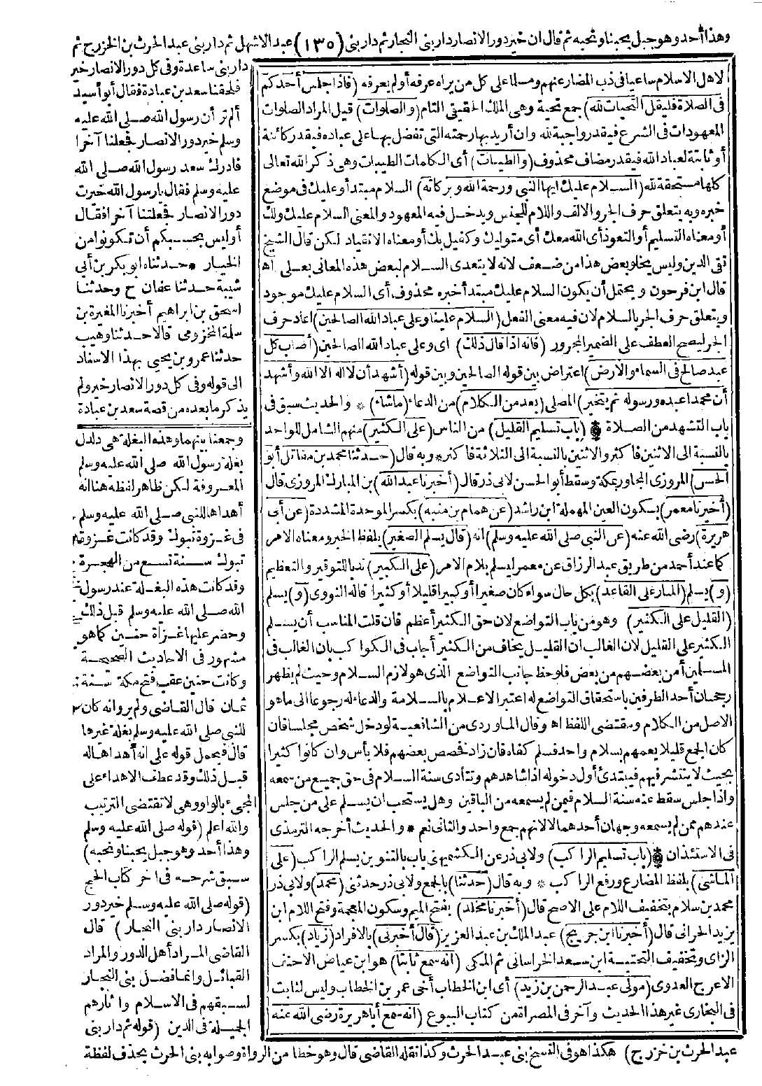 قال ابن فرحون: ويحتمل أن يكون السلام عليك مبتدأ خبره محذوف أي السلام عليك موجود ويتعلق حرف الجر بالسلام لأنه فيه معنى الفعل (السلام علينا وعلى عباد الله الصالحين) أعاد حرف الجر ليصح العطف على الضمير المجرور (فإنه إذا قال ذلك) أي وعلى عباد الله الصالحين (أصاب كل عبد صالح في السماء والأرض) اعتراض بين قوله الصالحين وبين قوله (أشهد أن لا إله إلا الله وأشهد أن محمدًا عبده ورسوله ثم يتخير) المصلي (بعد من الكلام) من الدعاء (ما شاء).
